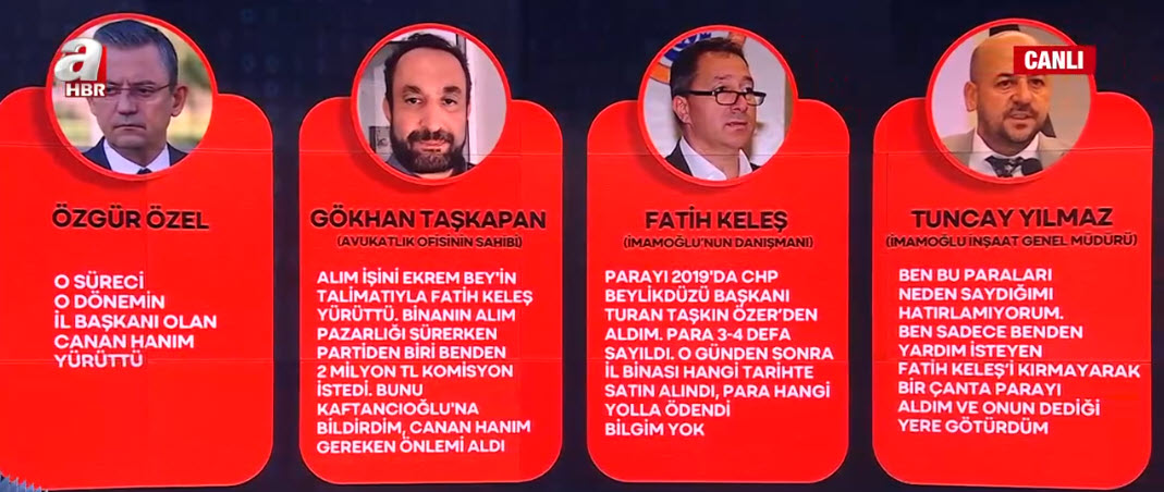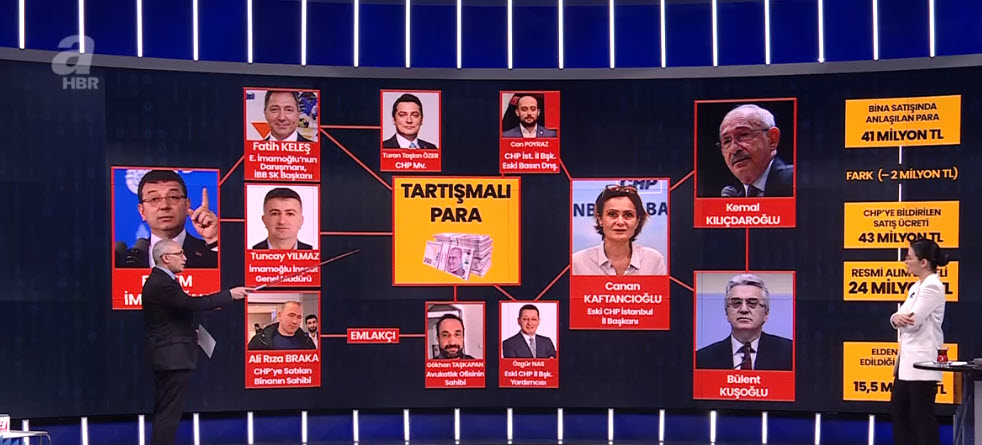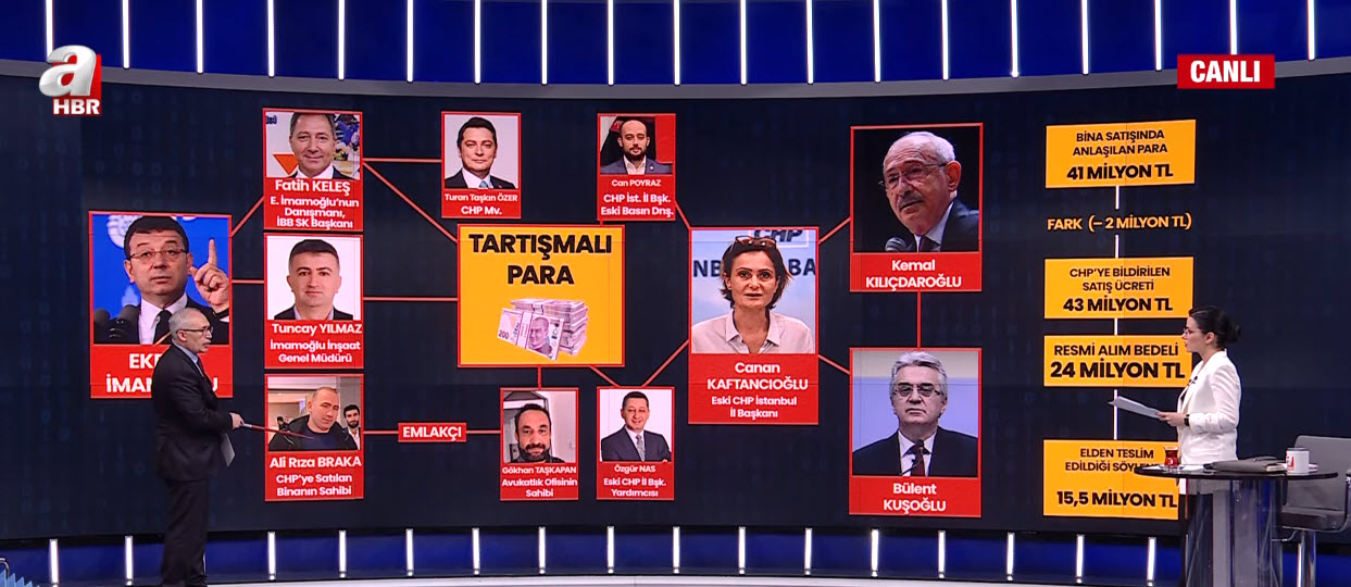CHP'de kaynağı karanlık paralar nereden geldi? "Para kuleleri" buz dağının görünen yüzü mü? İBB-CHP üzerinden "karar para" mı aklanıyor? Canan Kaftancıoğlu ne zaman ifade verecek? Ne anlatacak? Ekrem İmamoğlu bu kirli ağın neresinde? Gazeteci Abulkadir Selvi, A Haber canlı yayınında Arka Plan programında çarpıcı değerlendirmelerde bulundu. Selvi, "Bu işin merkezinde Ekrem İmamoğlu var. Bir 'EKOSİSTEM' kurmuşlar." ifadelerini kullandı.