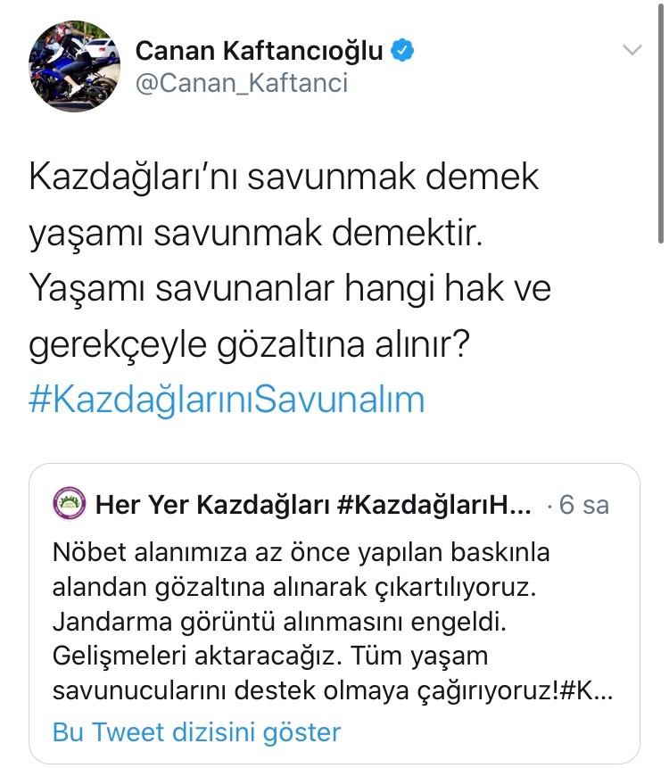 İstanbul Büyükşehir Belediye Başkanı Ekrem İmamoğlu ve babası Hasan İmamoğlu, Kaz Dağları'nda ağaçları keserek villalar yaparken; CHP İstanbul İl Başkanı Canan Kaftancıoğlu'nun, "Kazdağları'nı savunmak demek yaşamı savunmak demektir. Kazdağlarını savunalım" şeklinde açıklama yapması eleştiriliyor.