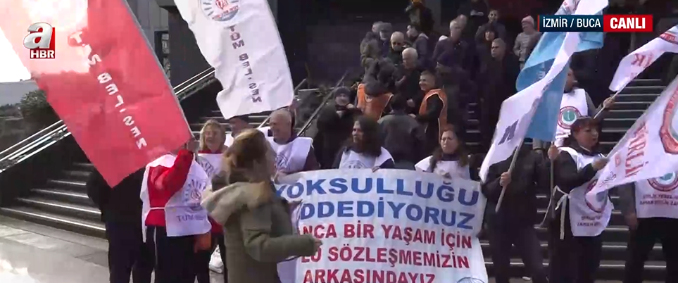 İzmir'de CHP yönetimi altındaki Buca Belediyesi'nde maaş ve tazminat krizi durulmak bilmiyor. Sosyal denge tazminatlarını (SDT) 7 aydır alamayan 300 kamu memuru, belediye yönetiminin somut bir adım atmaması üzerine iş bırakma eylemi başlattı. Geriye dönük hakları için meydanlara inen çalışanların mağduriyeti her geçen gün artarken, krizin detaylarını A Haber muhabiri Tayfun Er anlattı.