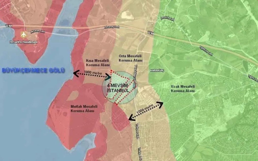 Büyükçekmece Göl Havzası 1/1000 Ölçekli Uygulama İmar Planı notları ve İSKİ Havza Yönetmeliği notlarına göre 4 Mevsim İstanbul Projesi'nde iki ayrı parsele inşa edilen villalarda her 2500 metre kareye bir villa yapılması gerekiyordu.