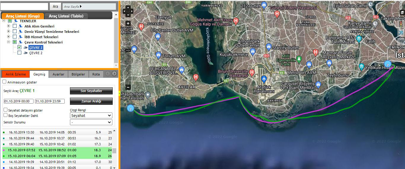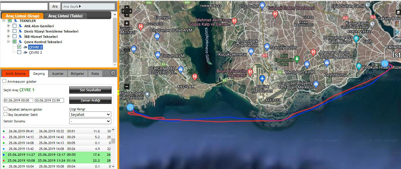 25 Haziran 2019'da saat 10: 08'de Yenikapı sahilinden hareket eden Çevre 1, saat 11: 24'te Beylikdüzü Marina'ya varıyor. 3 dakika sonra İmamoğlu'nu alan tekne 11: 27'de hareket ederek, Yenikapı'ya 12: 17'de ulaşıyor.