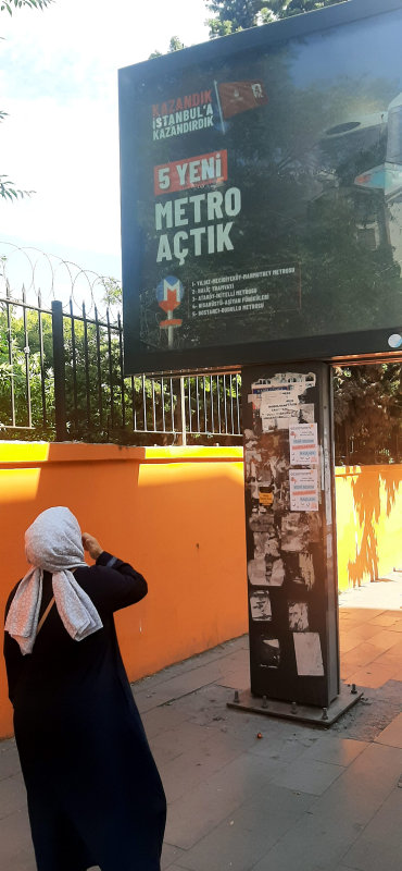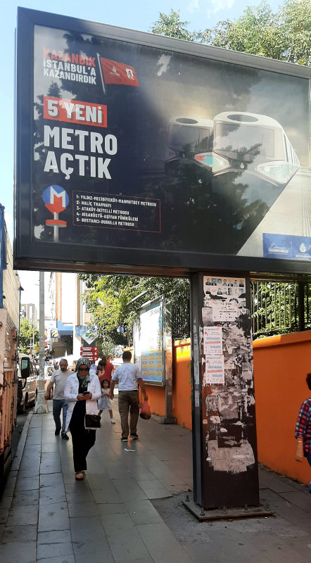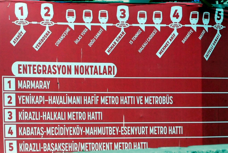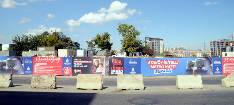 İstanbul Büyükşehir Belediyesi'nin Bahçelievler Yenibosna Yıldırım Beyazıt Caddesi üzerinde Kuleli İlköğretim Okulu binasının hemen yanındaki İBB reklam panosunda "5 metro açtık" şeklinde verdiği hat isimlerinden Ataköy - İkitelli Metrosu'nun duraklarının AK Parti döneminde yapılan durakların açılmadığı kaderine terk edildiği görüldü.