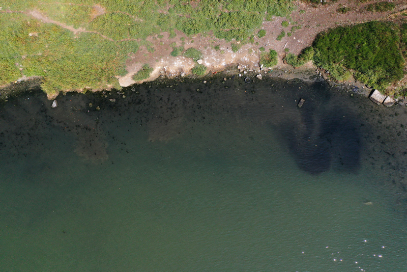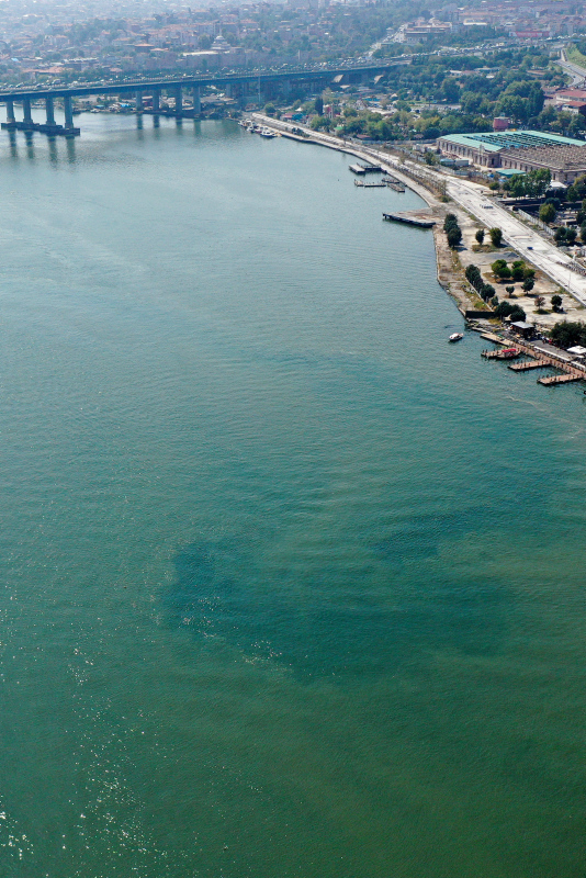 Havadan çekilen görüntülerde, deniz suyundaki renk değişimi ile Eyüpsultan Silahtarağa mevkisinin kıyı kesimleri ve adacıkların çevresinin siyaha dönüşmesi dikkati çekiyor.