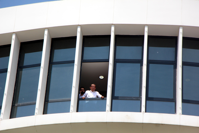 Protesto gösterisini makam odasının penceresinden izleyen Özcan, eylem sırasında aleyhine atılan sloganlara eşlik edip, ritim tuttu, el sallayarak dans etti.