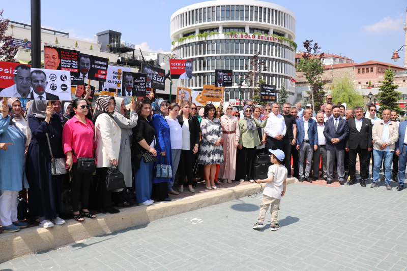 "Ahlak yoksa bir insanda, isminin yanındaki tüm rütbeler de anlamını yitirir. Hepinizin bildiği üzere, Belediye Başkanı Tanju Özcan'ın, kadın bir belediye meclis üyesine gayri ahlaki söylemleri ve sonrasında 'iffetimi muhafaza ettim' şeklindeki alaycı yorumları, seviyenin geldiği noktayı göstermiştir. Ne yazık ki, Bolumuzun imar ve esenliğinden mesul olan belediye başkanı, bu mesuliyetinin tam aksine, Bolumuzu utanç abidesi haline getirmeye hız kesmeden devam etmektedir. Evet, biz belediye başkanından utanıyoruz. Kimseye faydası olmayan, seviyesiz ve ahlak dışı söylem ve davranışlarını, alışkanlık haline getiren bu şahsa 'haddini bil, artık yeter' diyoruz ve sormadan edemiyoruz. 'Senin de bir eşin, senin de bir annen yok mudur? Onlardan da mı utanmazsın"