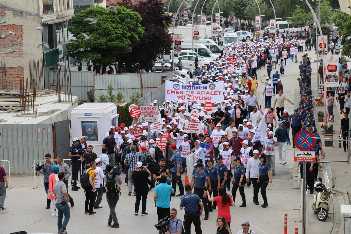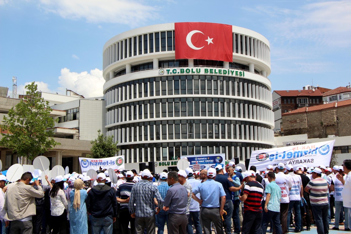 Hak-İş Konfederasyonuna bağlı Hizmet-İş Sendikasının, Bolu Belediyesinde yaşanan işten çıkarmaları protesto etmek amacıyla düzenlediği "Emek ve Adalet Yürüyüşü" Bolu Belediyesi önünden başlatıldı.