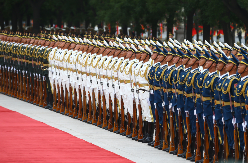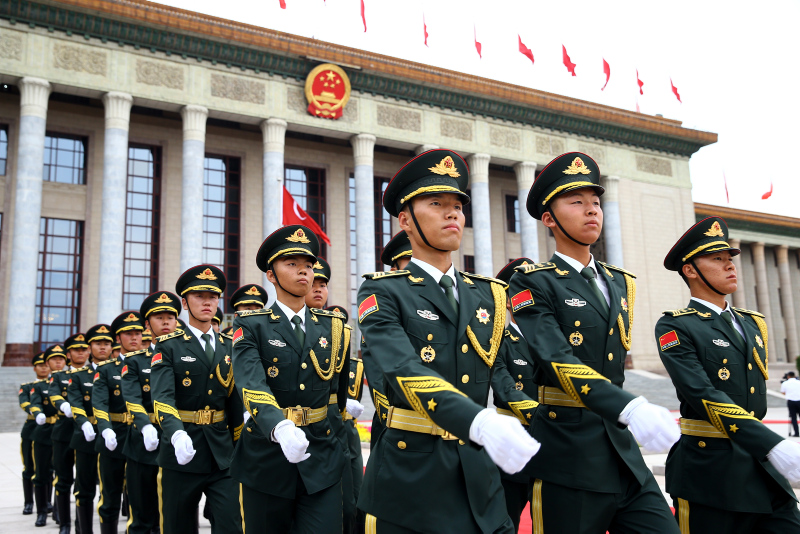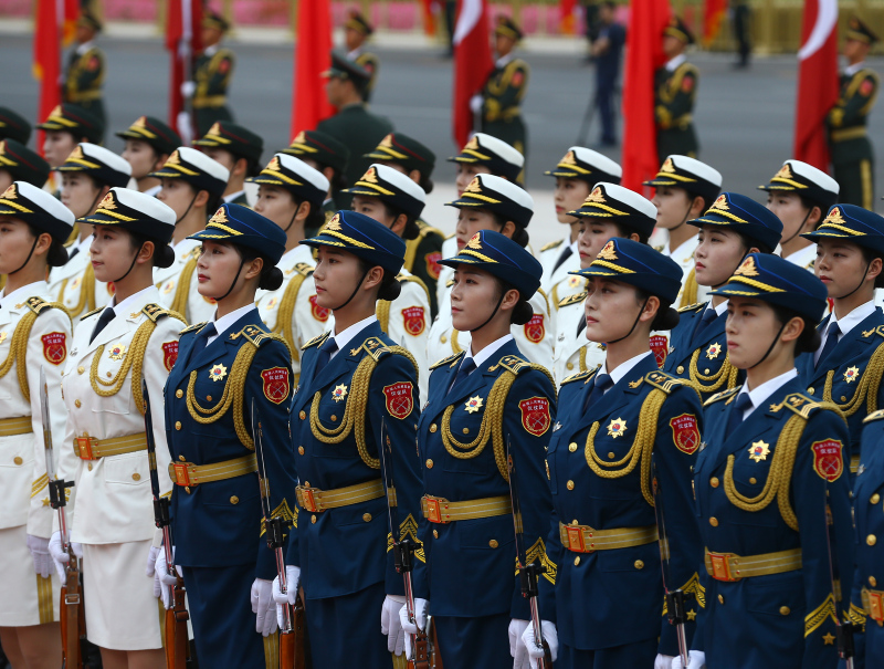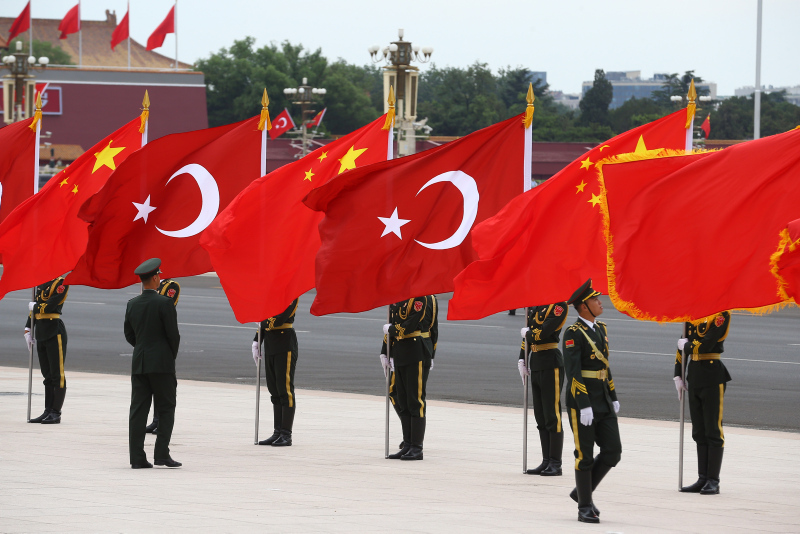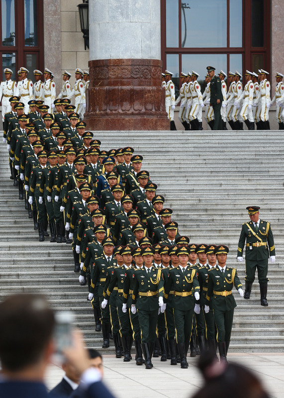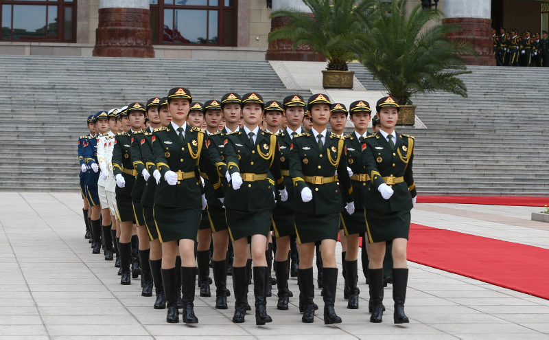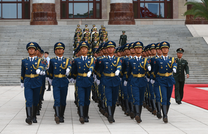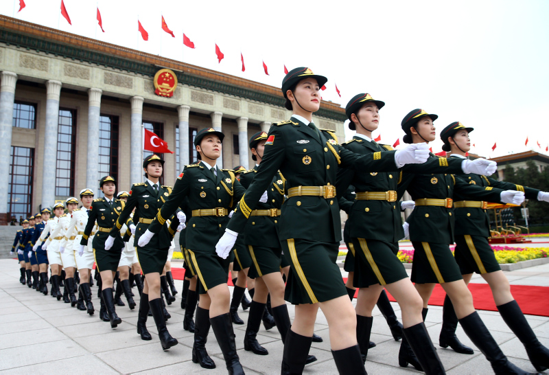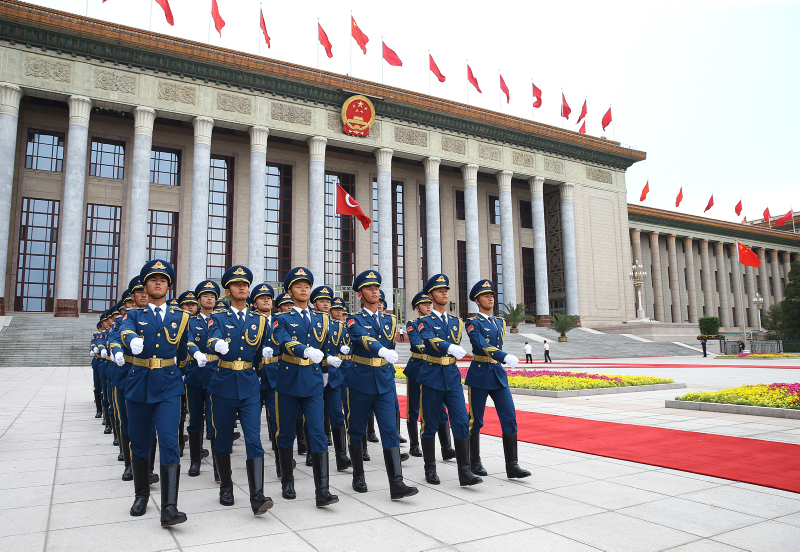 Cumhurbaşkanı Erdoğan için yapılan resmi karşılama töreni öncesinde, Çin Halk Kurtuluş Ordusu tarafından başkent Pekin'deki Tienanmın Meydanı'nda bulunan Büyük Halk Salonu'nda hazırlık yapıldı.