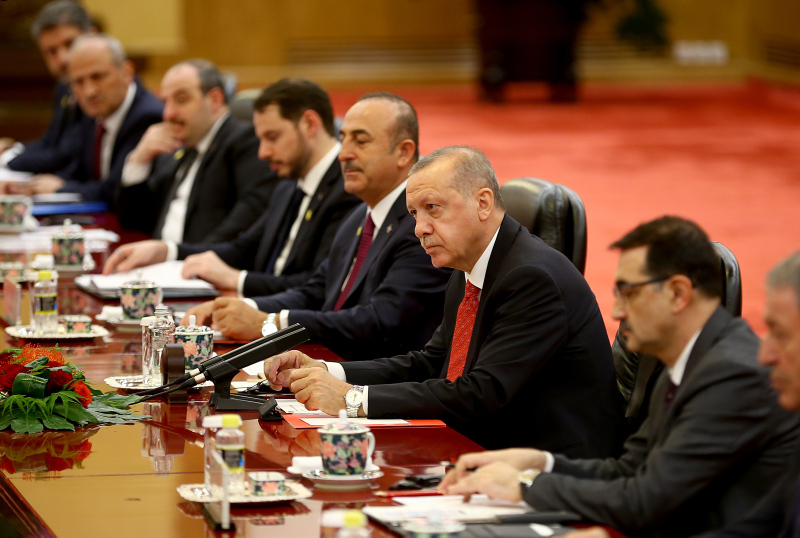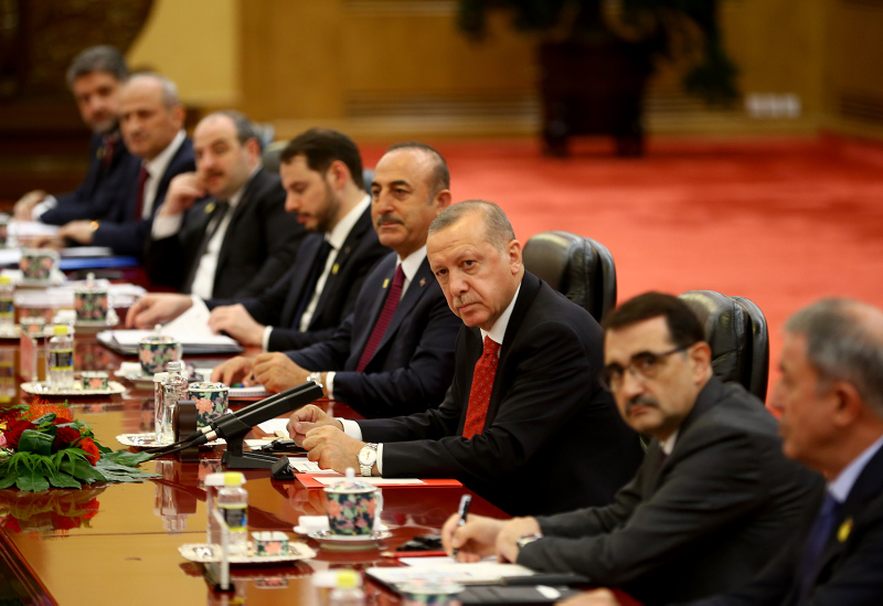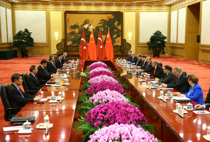 Başkent Pekin'deki Tienanmın Meydanı'nda bulunan Büyük Halk Salonu'ndaki törende Cumhurbaşkanı Erdoğan, makam aracından inişinde mevkidaşı Şi tarafından karşılandı. Karşılama töreni öncesi yapılan hazırlıklar dikkatlerden kaçmadı.