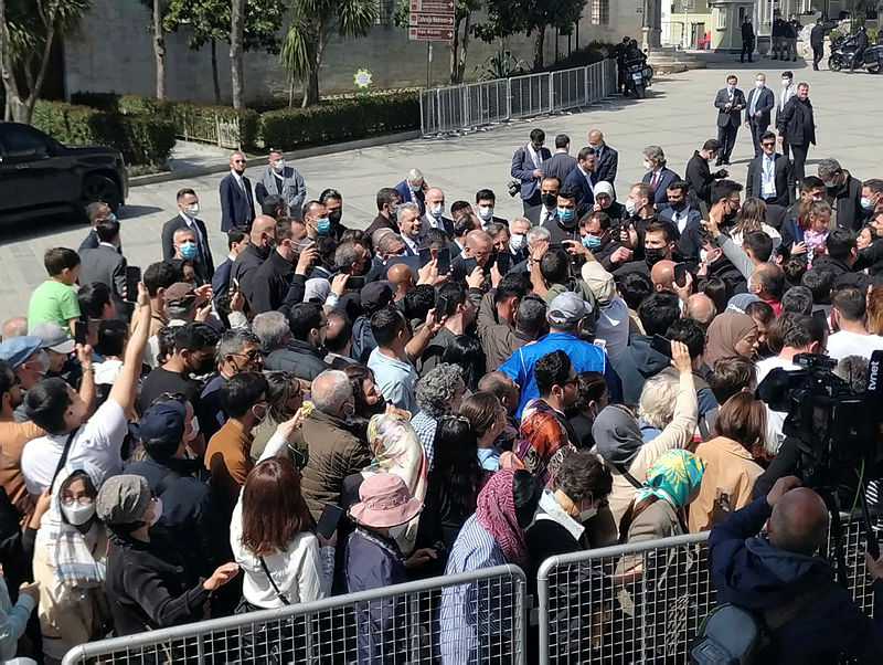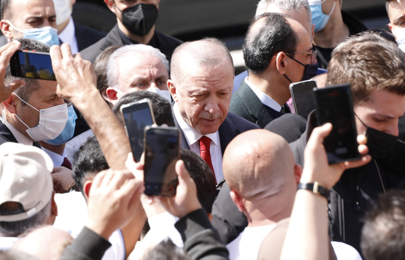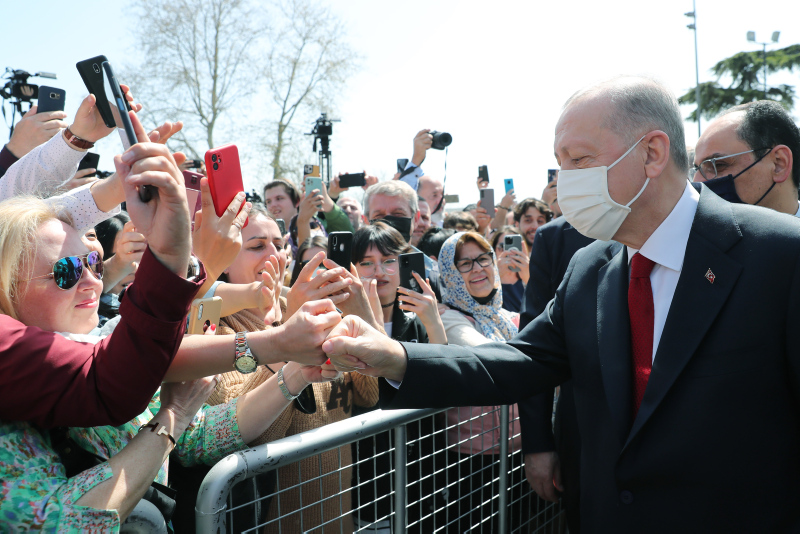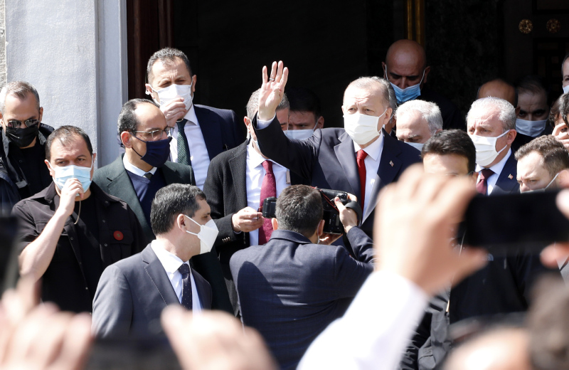Cuma namazını burada kılan Erdoğan'a, TBMM Başkanı Mustafa Şentop, Kültür ve Turizm Bakanı Mehmet Nuri Ersoy, Sanayi ve Teknoloji Bakanı Mustafa Varank, AK Parti Genel Başkanvekilleri Binali Yıldırım ve Numan Kurtulmuş, Cumhurbaşkanlığı İletişim Başkanı Fahrettin Altun, Cumhurbaşkanlığı Sözcüsü İbrahim Kalın, AK Parti Genel Başkan Yardımcısı Nurettin Canikli, Diyanet İşleri Başkanı Prof. Dr. Ali Erbaş, YÖK Başkanı Prof. Dr. Erol Özvar, İstanbul Valisi Ali Yerlikaya, bazı milletvekilleri ve AK Parti İl Başkanı Osman Nuri Kabaktepe de eşlik etti.