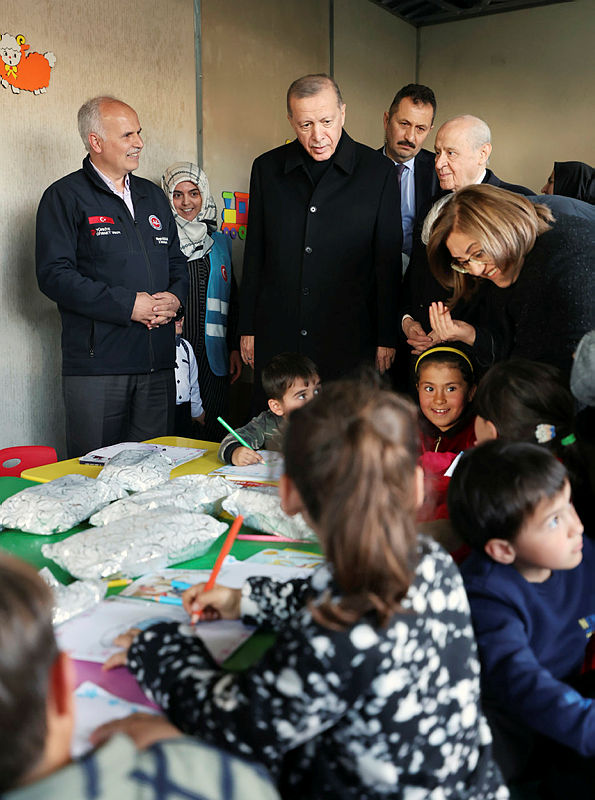 Başkan Recep Tayyip Erdoğan, Gaziantep'in Nurdağı ilçesinde AFAD'ın oluşturduğu konteyner kentte MHP Genel Başkanı Devlet Bahçeli ile incelemelerde bulunurken depremzedelerle görüştü. Vatandaşlarla sohbet ederek dertlerini dinleyen Başkan Erdoğan küçük çocuklarla da yakından ilgilendi. İşte detaylar...