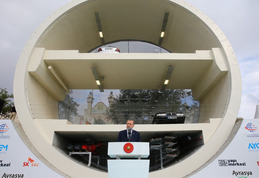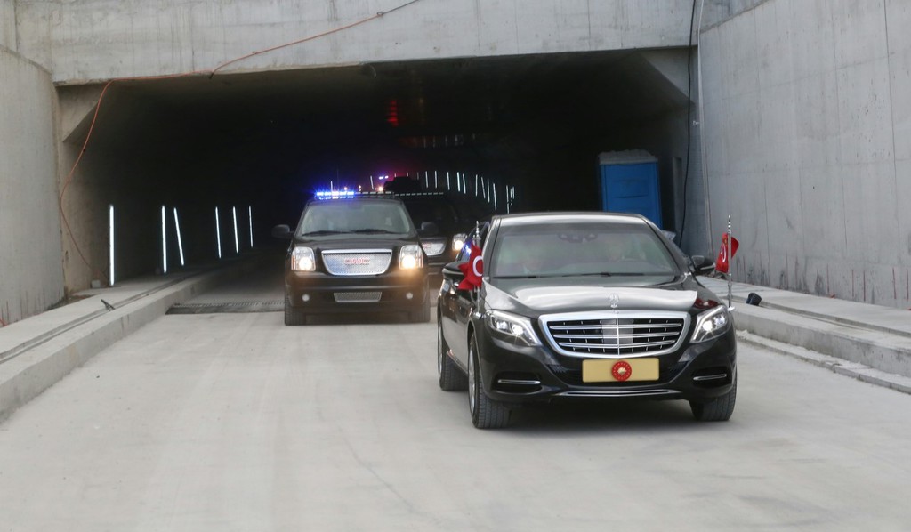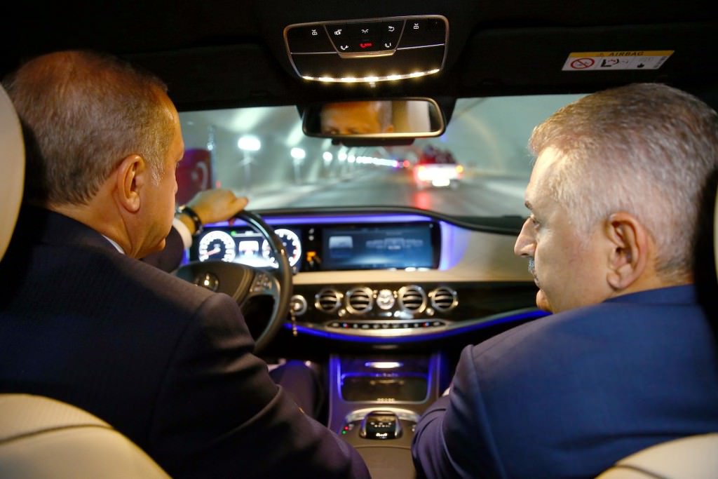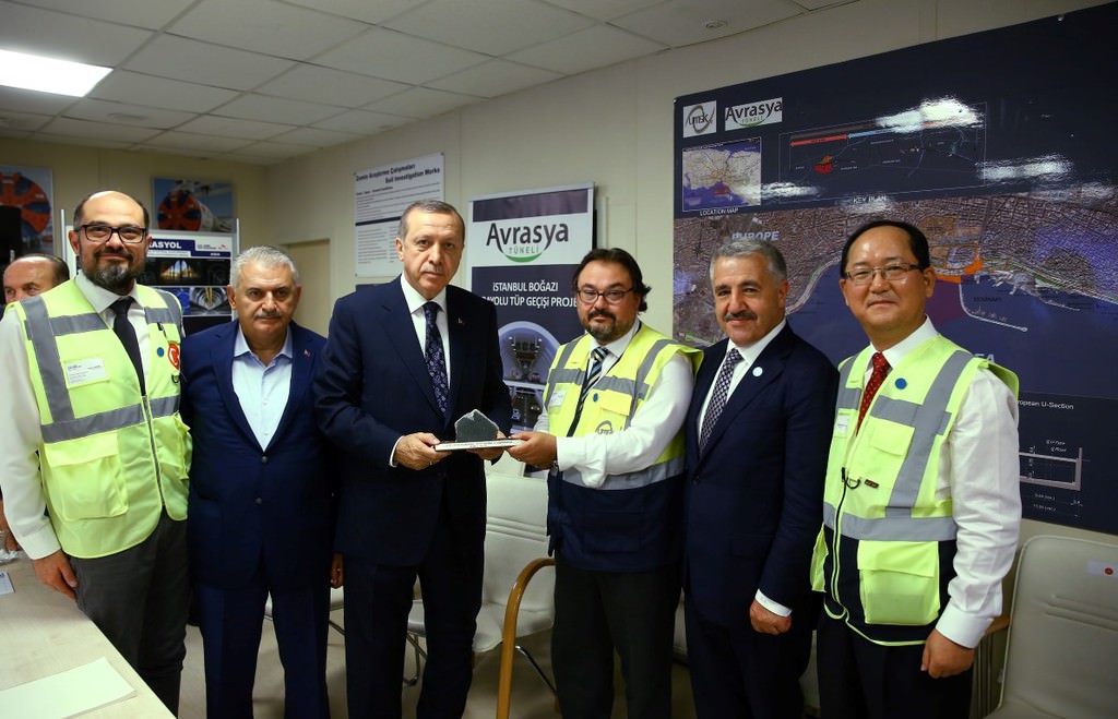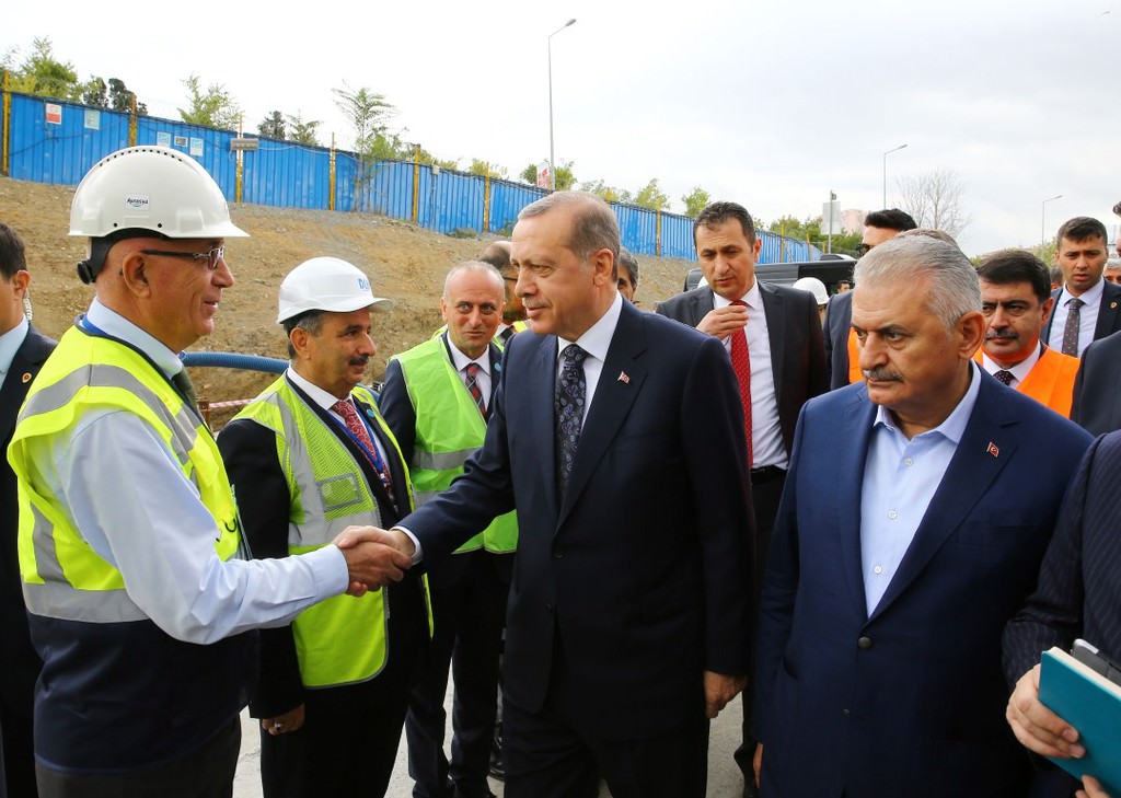 Dünyanın en iyi mühendislik projeleri arasında gösterilen tünelin Harem'deki şantiyesine gelen Erdoğan, burada makam otomobilinin şoför koltuğuna oturdu. Erdoğan'ın yanına Başbakan Binali Yıldırım, arka koltuğa da Ulaştırma, Denizcilik ve Haberleşme Bakanı Ahmet Arslan bindi.