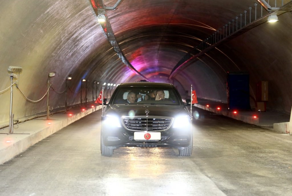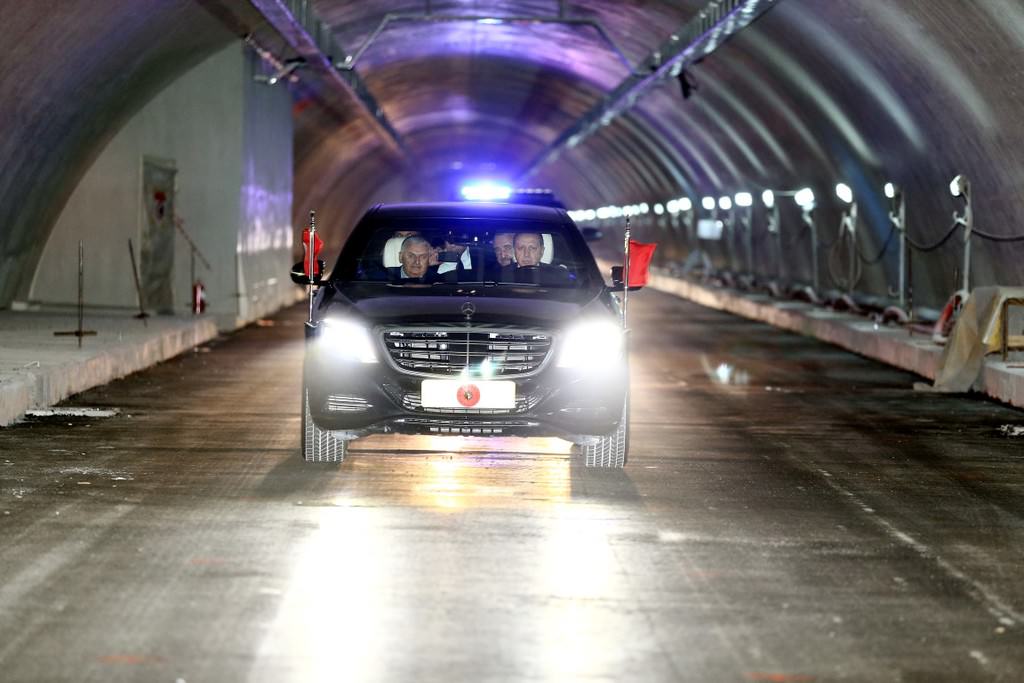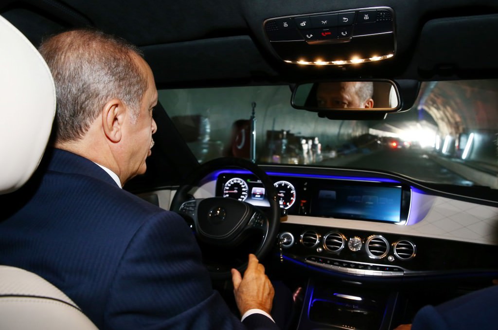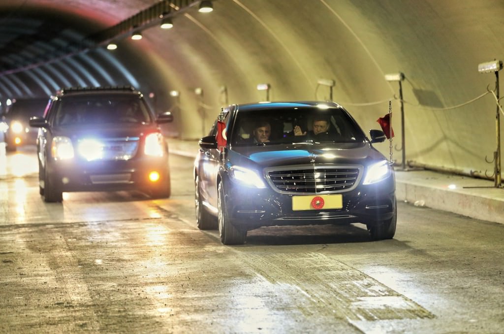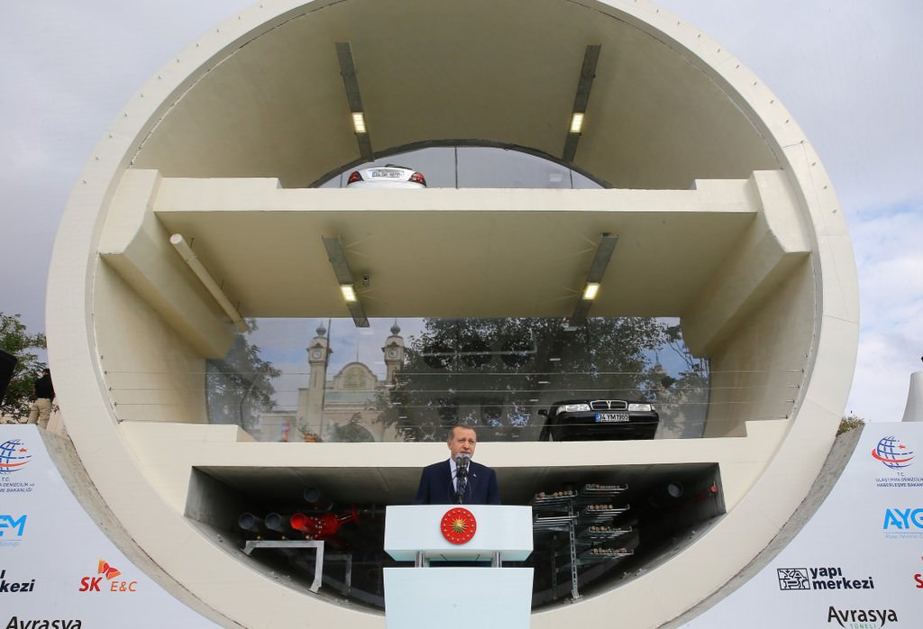 Dünyanın en iyi mühendislik projeleri arasında gösterilen tünelin Harem'deki şantiyesine gelen Erdoğan, burada makam otomobilinin şoför koltuğuna oturdu. Erdoğan'ın yanına Başbakan Binali Yıldırım, arka koltuğa da Ulaştırma, Denizcilik ve Haberleşme Bakanı Ahmet Arslan bindi.