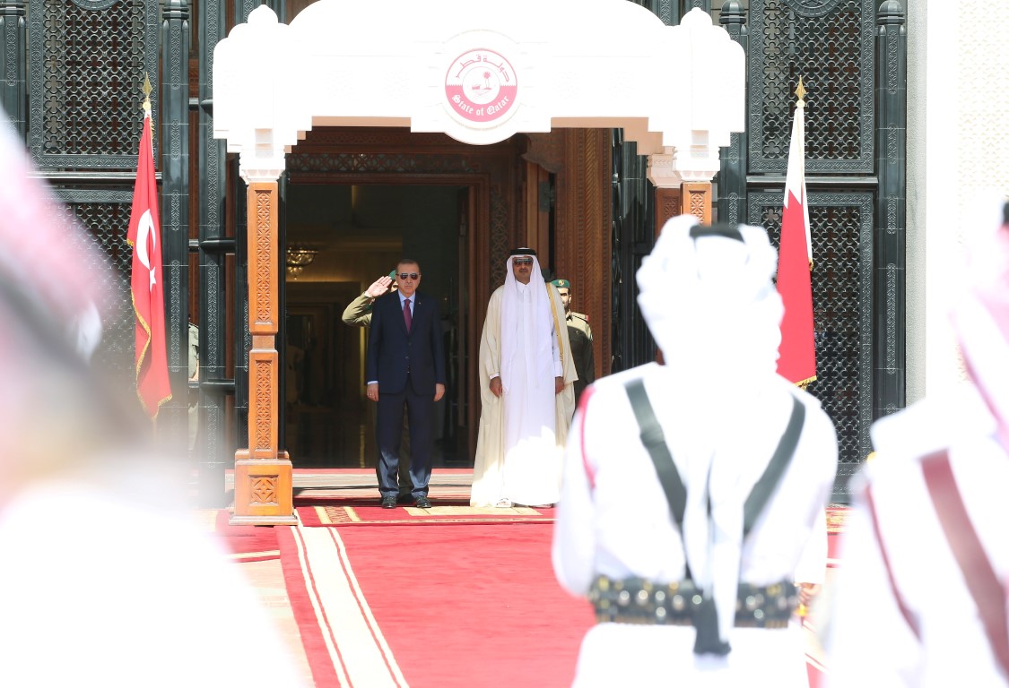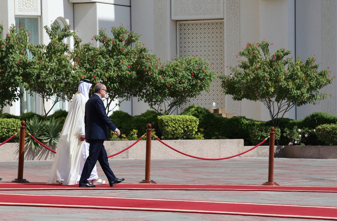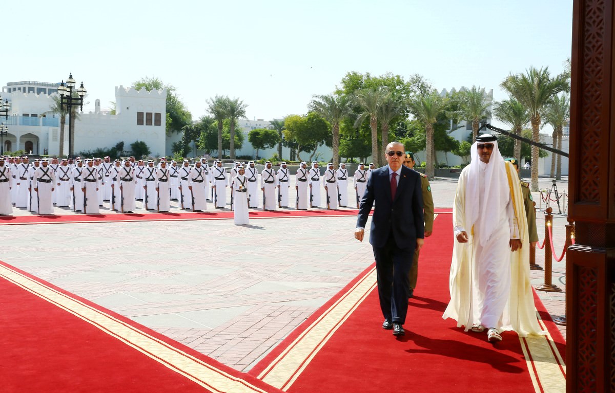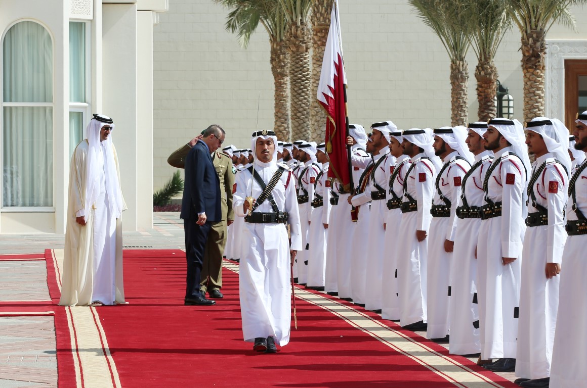 Resmi temaslarda bulunmak üzere Katar'ın başkenti Doha'da bulunan Cumhurbaşkanı Recep Tayyip Erdoğan, Katar Emiri El Sani tarafından resmi törenle karşılandı.