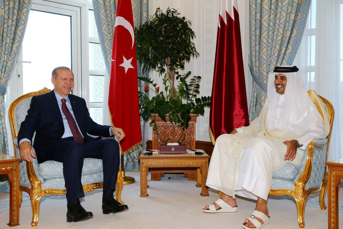 İki ülke milli marşlarının çalınmasının ardından tören kıtasını denetleyen Cumhurbaşkanı Erdoğan ve Katar Emiri El Sani, baş başa görüşmelerini gerçekleştirmek ve Türkiye-Katar Yüksek Stratejik Komite 3. Toplantısı'na başkanlık etmek üzere Emirlik Divanı'na geçti. Erdoğan, Katar Emiri Şeyh Temim Bin Hamad El Sani ile bir araya geldi.