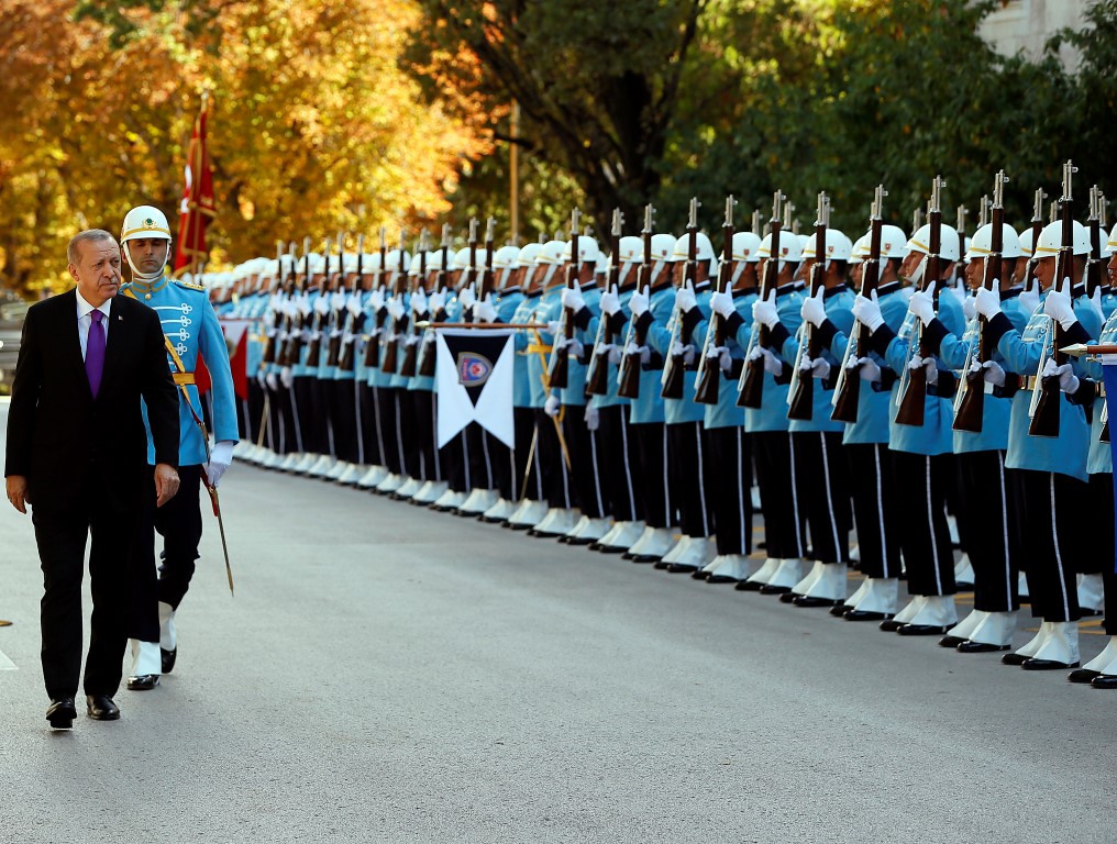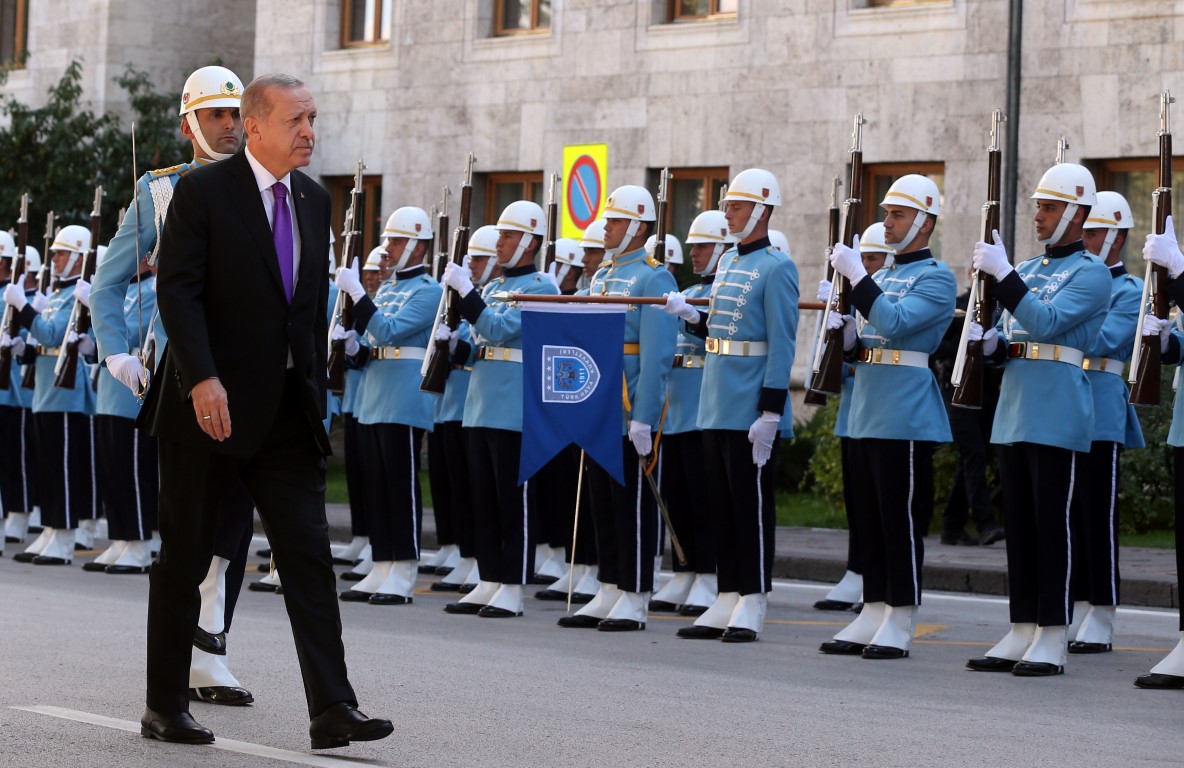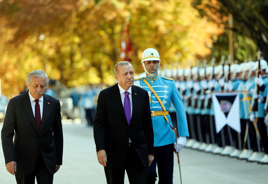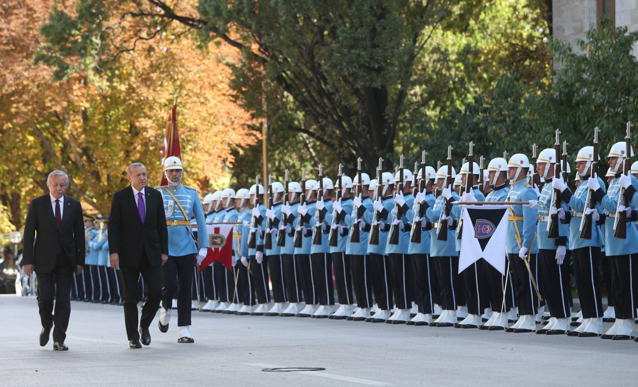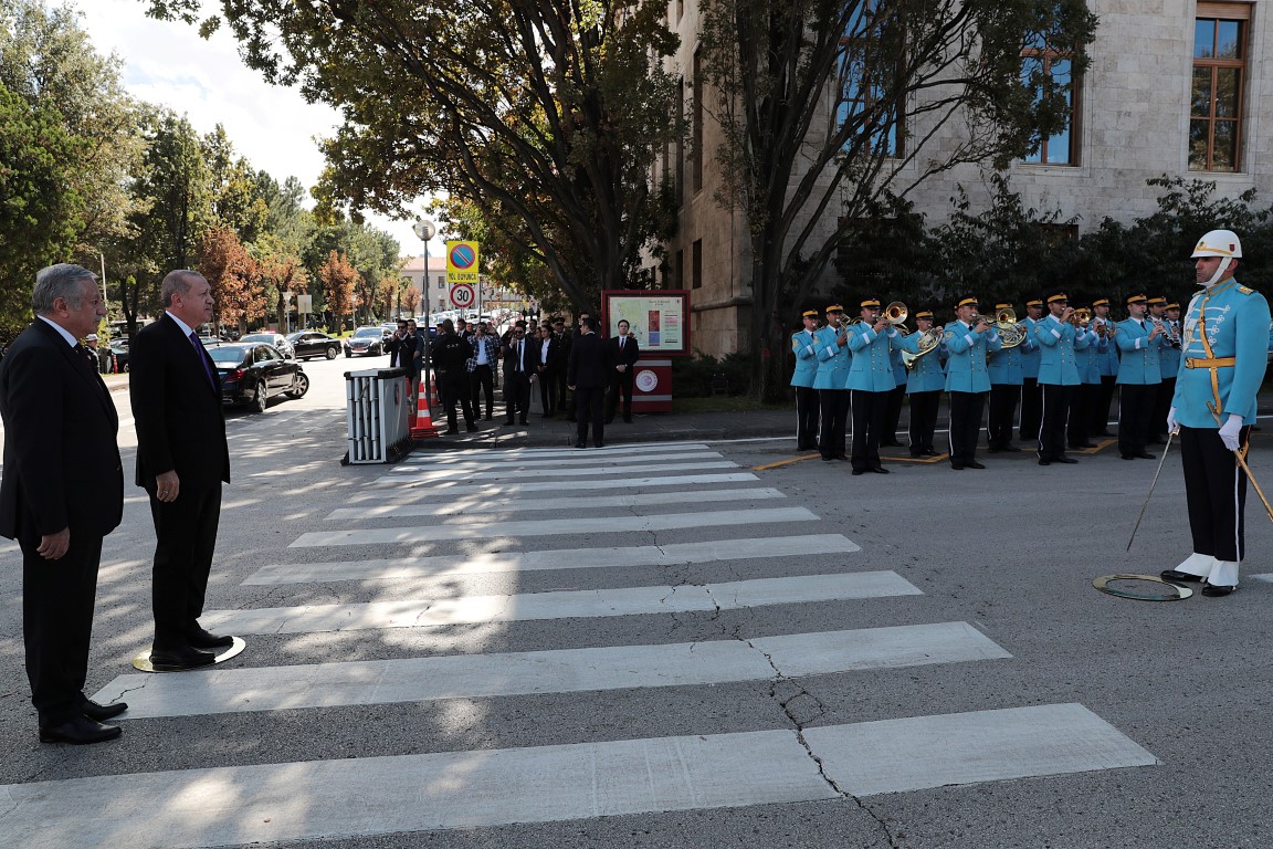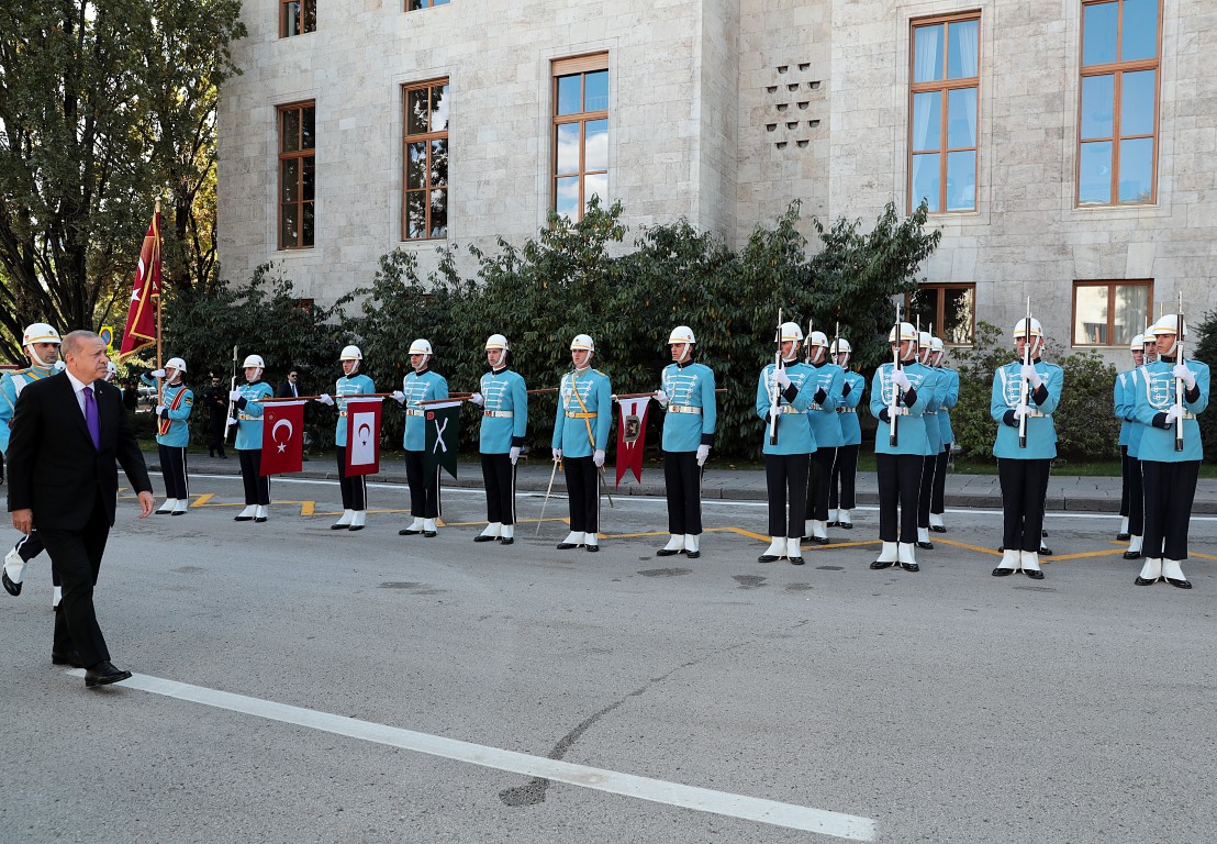 Başkan Erdoğan, TBMM Başkanvekili Celal Adan tarafından askeri törenle karşılandı.