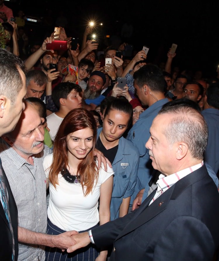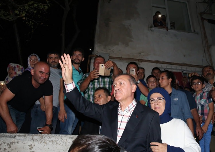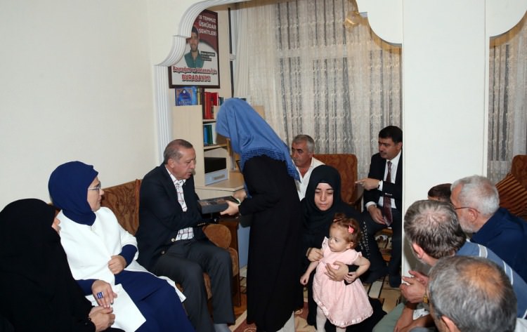 Erdoğan, Çengelköy'de darbecileri engellemeye çalışırken 36 yaşında şehit düşen Kırıkkale Şeker Fabrikası'nda çalışan Gökhan Esen ile yine aynı yerde 23 yaşında şehit olan Balıkesir Üniversitesi İşletme Fakültesi 3. sınıf öğrencisi Burak Cantürk'ün ailesini de ziyaret ederek, taziyelerini sundu.