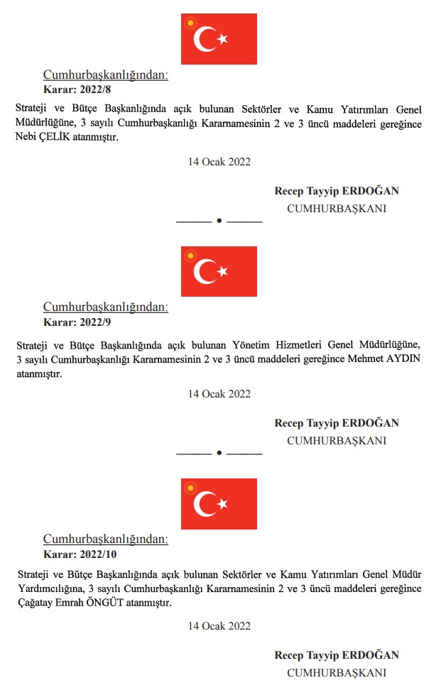 STRATEJİ VE BÜTÇE BAŞKANLIĞI'NA YAPILAN ATAMALAR