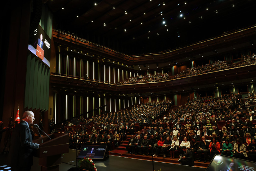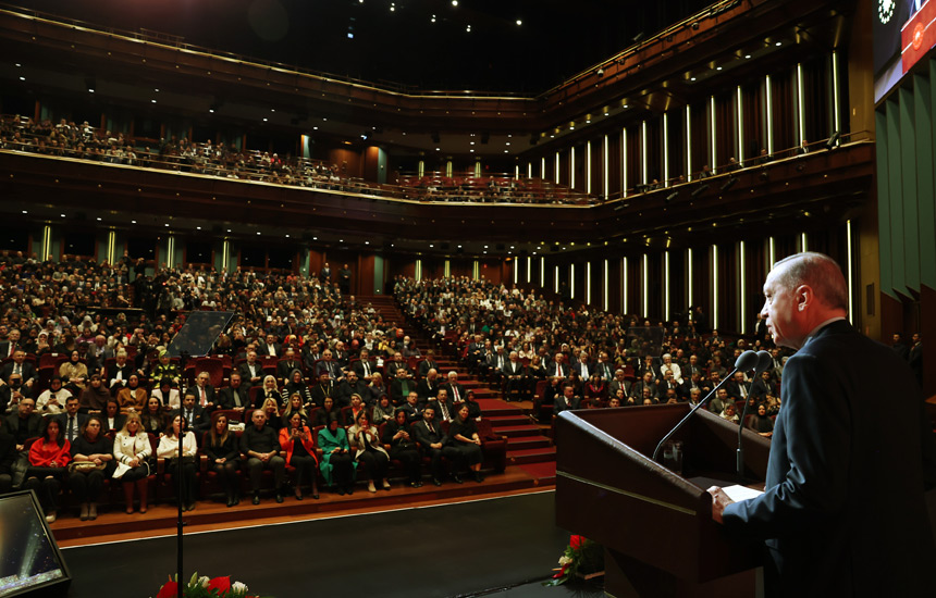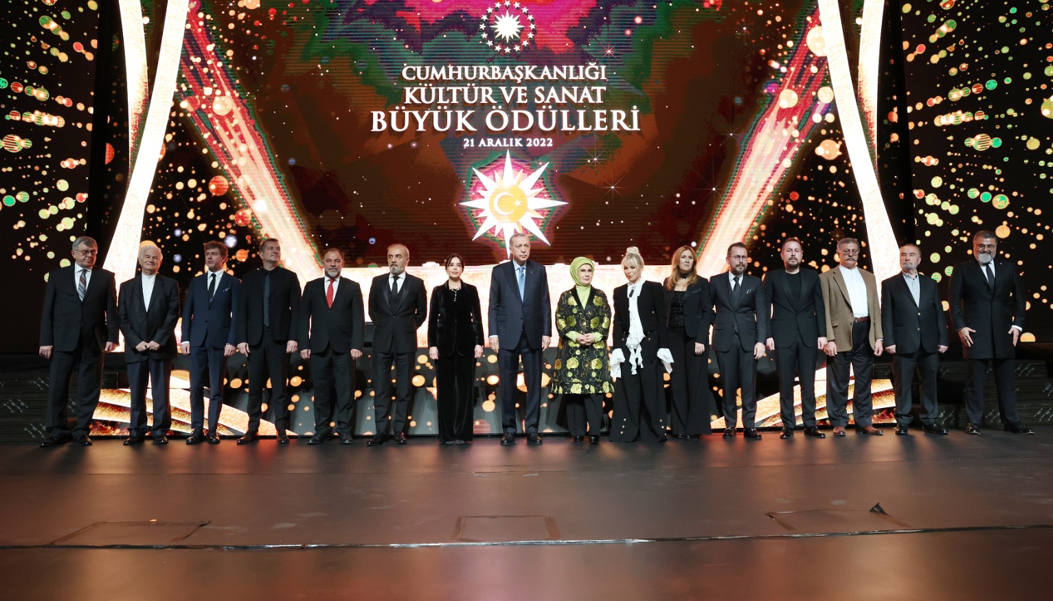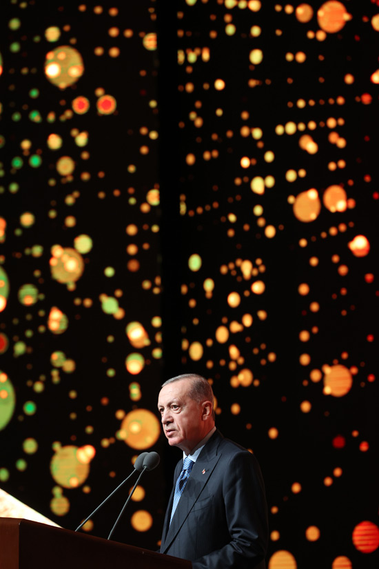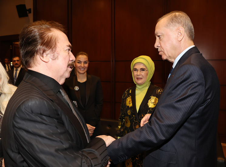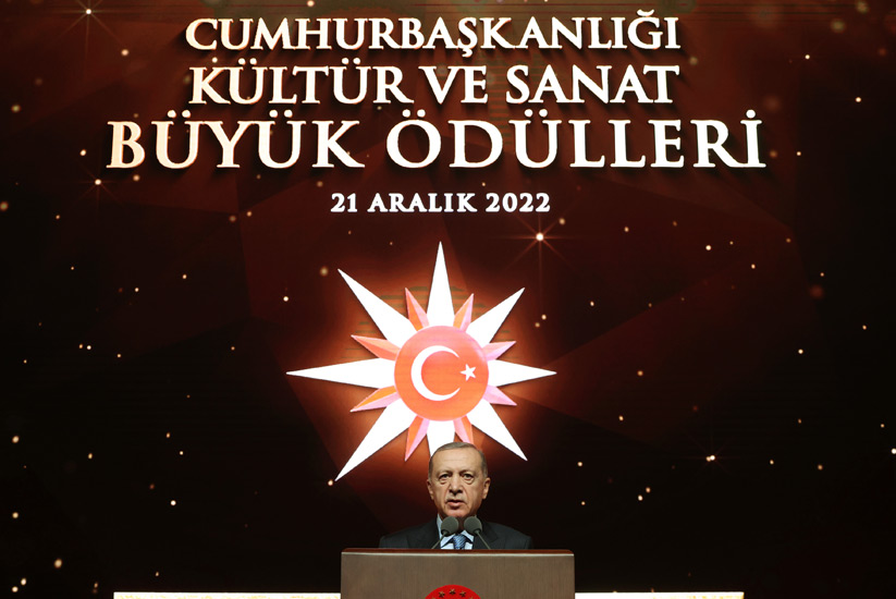 Başkan Erdoğan, konuşmasının ardından ödüle layık görülen Ajda Pekkan, Süleyman Saim Tekcan, Yılmaz Erdoğan, Hayreddin Karaman, Varol Yaşaroğlu, Ömür Akkor, Yunus Emre Akkor, Tan Sağtürk, Hilmi Şenalp ve Sevan Bıçakçı'ya ödüllerini takdim etti.