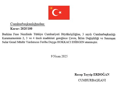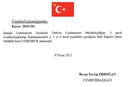 Resmi Gazete'de, Cumhurbaşkanlığı politika kurullarına yönelik yapılan atamalar yayımlandı. Bosna-Hersek, Burkina Faso, İrlanda ve Nijerya büyükelçiliklerine yeni isimler getirilirken birçok üniversiteye de yeni rektörler atandı. Cumhurbaşkanlığı Başdanışmanlığına da Göksel Aşan getirildi. Yüksek Öğretim Kurulu üyeliğine İbrahim Şener, Milli Eğitim Bakanlığı Akademisi'ne Cevdet Vural, Kültür ve Sanat Politikaları Kurulu üyeliğine ise Orhan Gencebay atandı.
