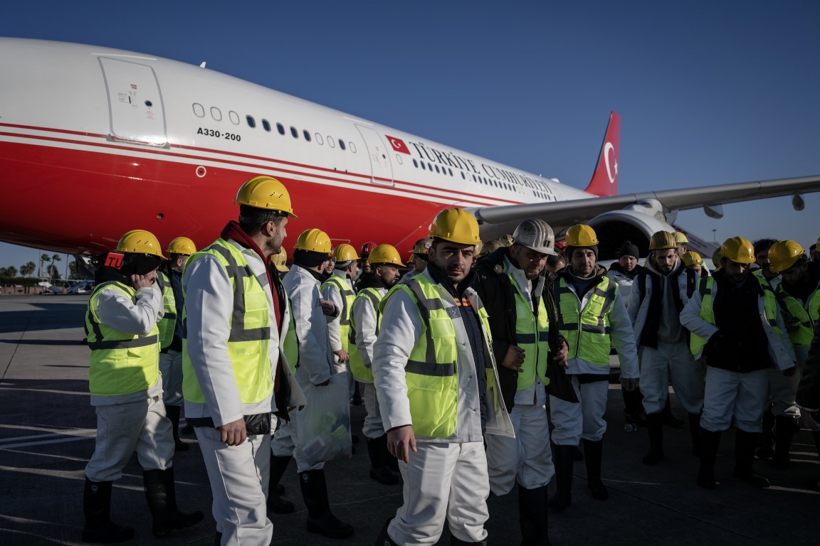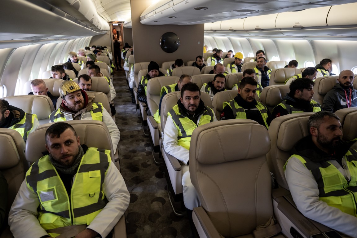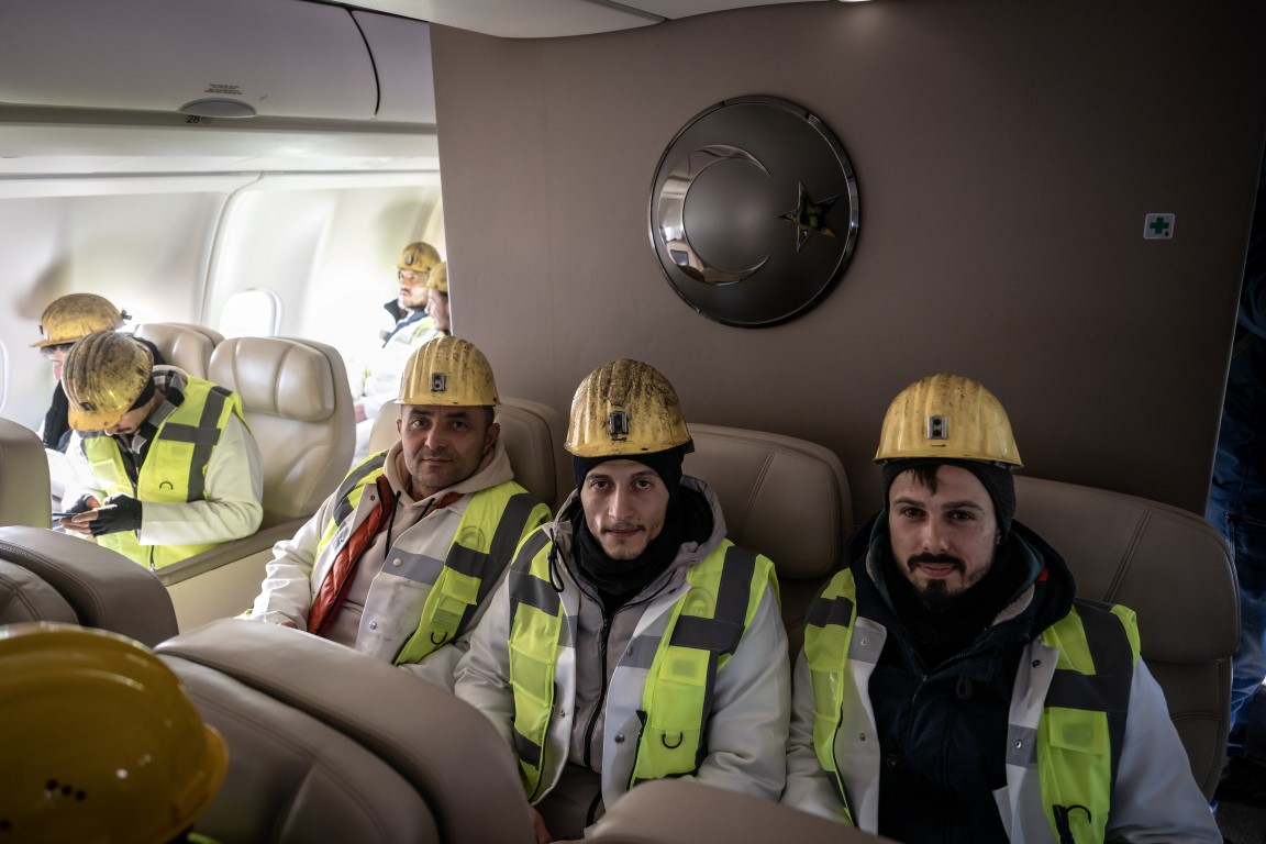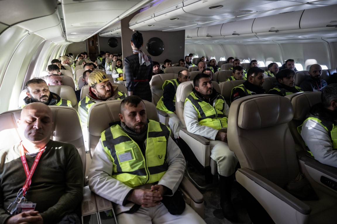 Cumhurbaşkanlığına ait uçaklar, Kahramanmaraş merkezli depremden etkilenen illerdeki arama kurtarma çalışmalarına destek verecek 65 madenciyi deprem bölgesine taşımak için havalandı.