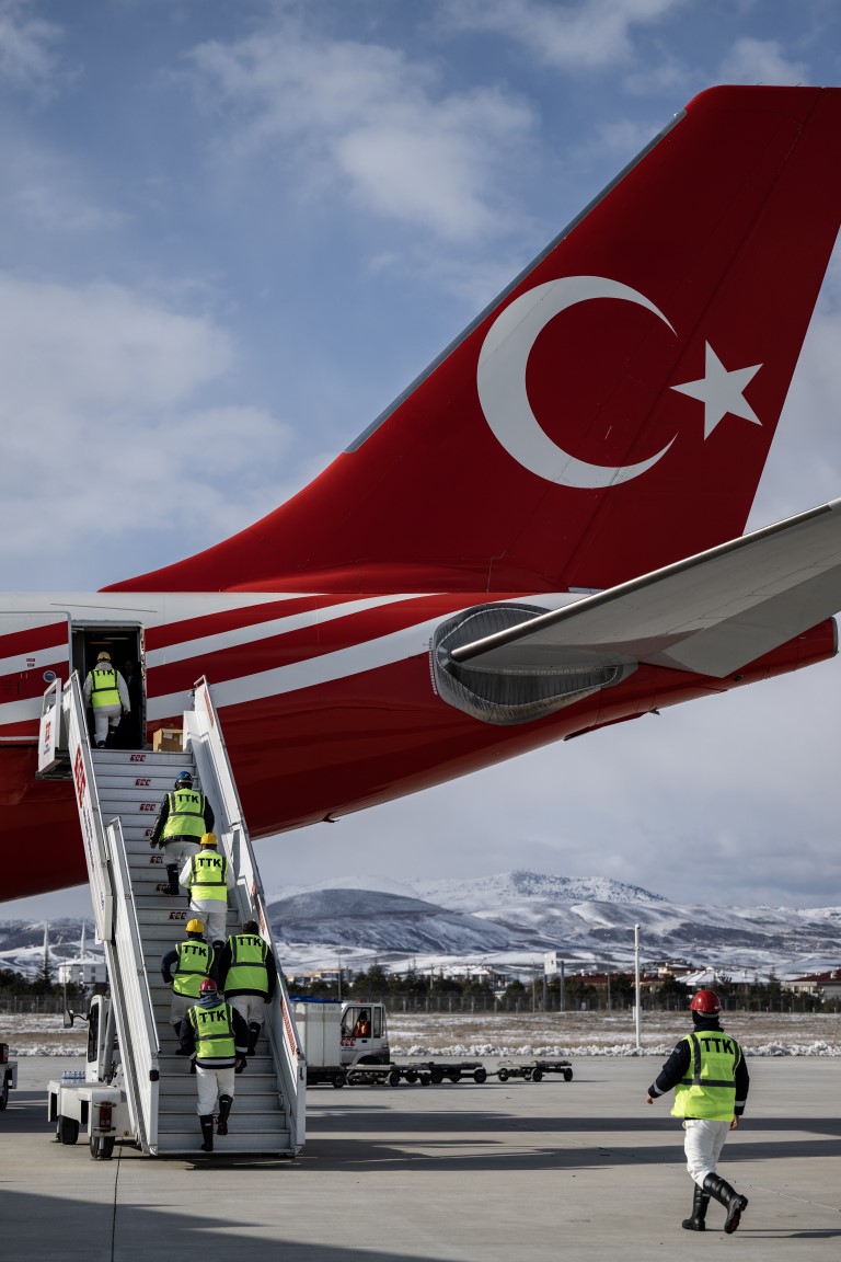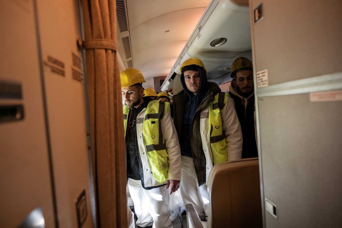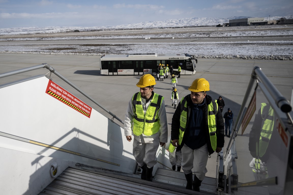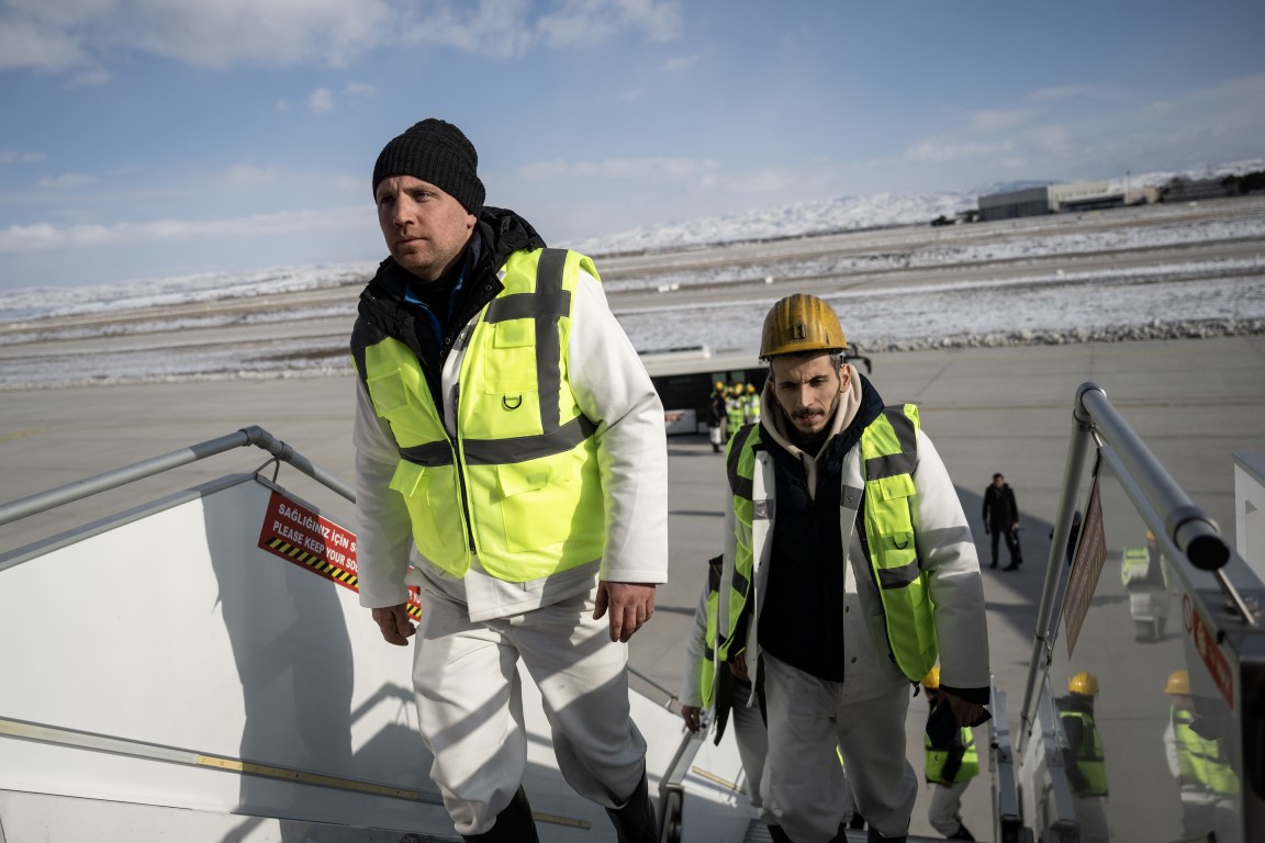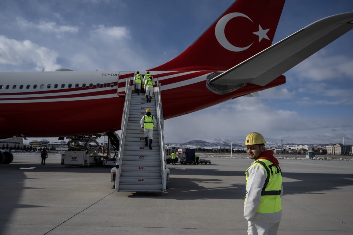 Cumhurbaşkanlığına ait uçaklar, Kahramanmaraş merkezli depremden etkilenen illerdeki arama kurtarma çalışmalarına destek verecek 65 madenciyi deprem bölgesine taşımak için havalandı.