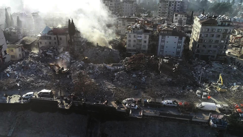 Kahramanmaraş'ın Pazarcık ilçesinde 7.7 ve Elbistan ilçesinde 7.6 büyüklüğünde meydana gelen depremler, bölgede ağır hasara yol açtı. Binlerce vatandaşımızın hayatını kaybettiği depremde arama ve kurtarma çalışmaları tüm hızıyla sürüyor. Diğer yandan deprem bölgelerinde yaşanan hasar havadan yapılan çekimle gözler önüne serildi. İşte o anlar...