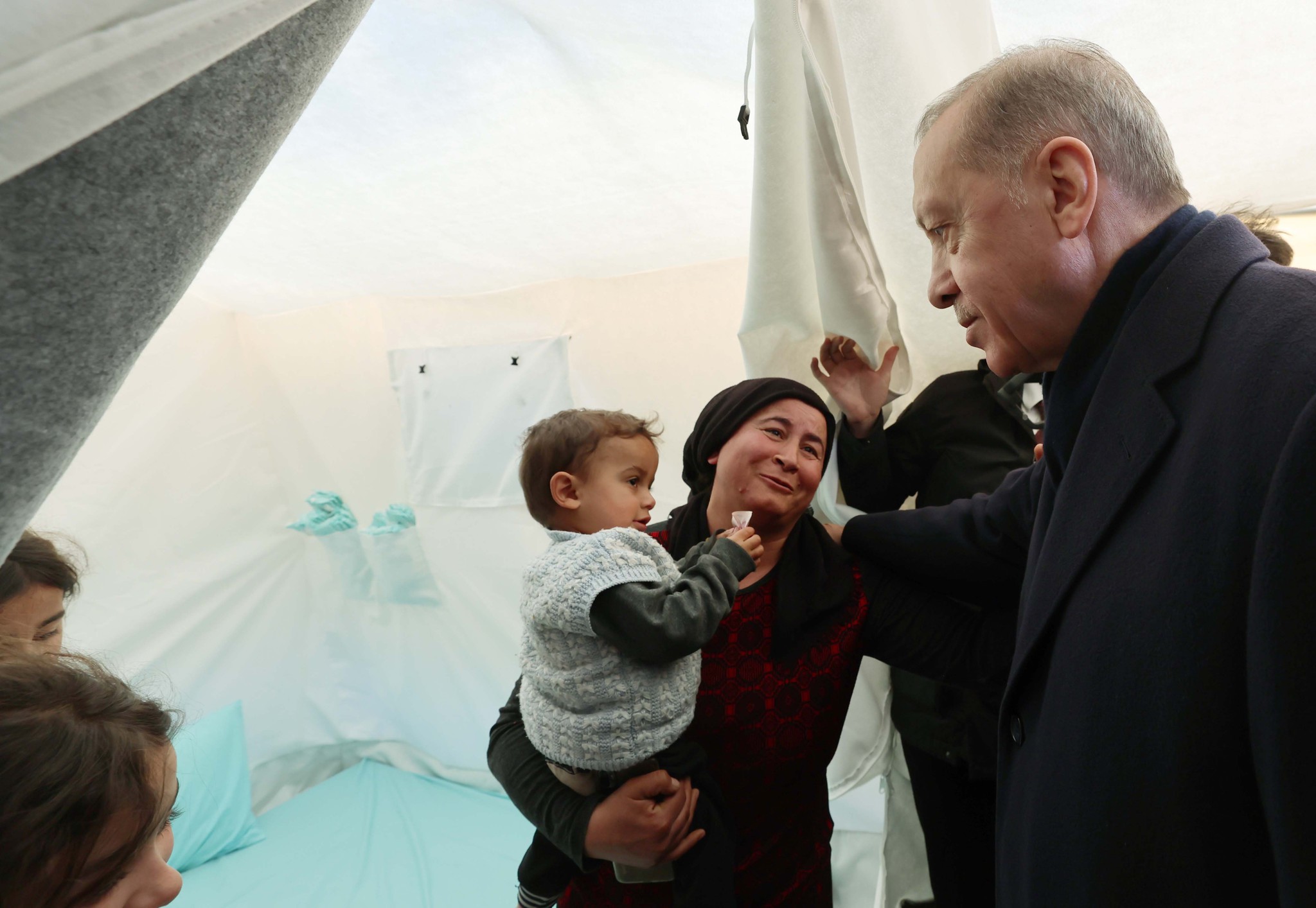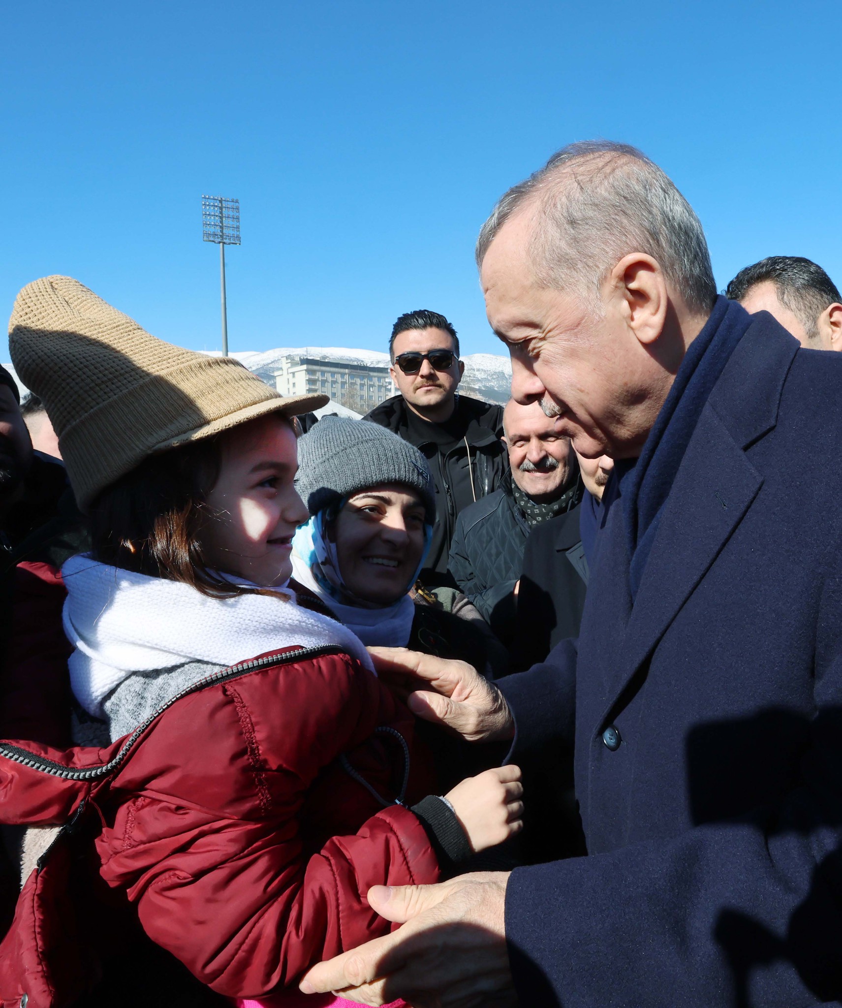 Başkan Recep Tayyip Erdoğan, Kahramanmaraş merkezli depremlerin ardından AFAD'ın Onikişubat Stadyumu'na kurduğu çadır kentte vatandaşlarla bir araya geldi.