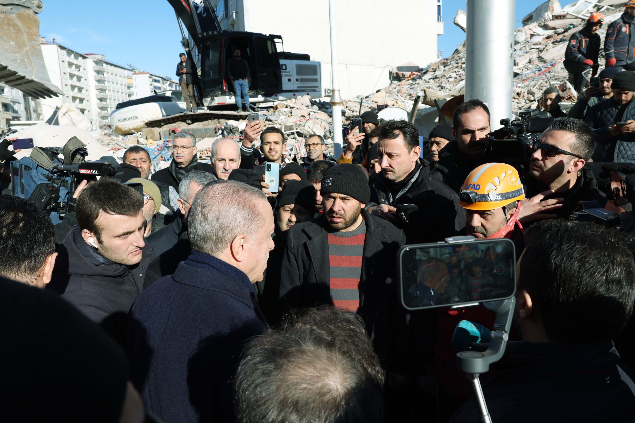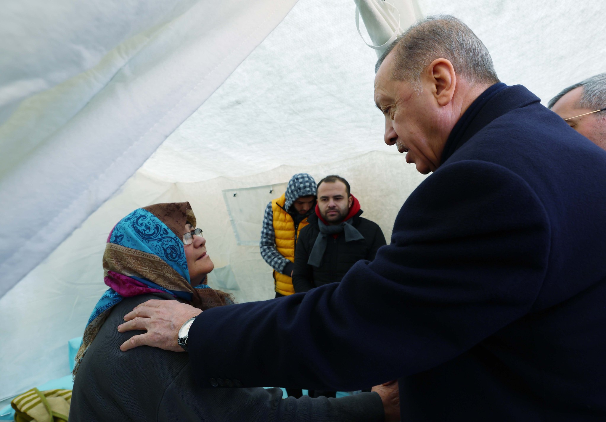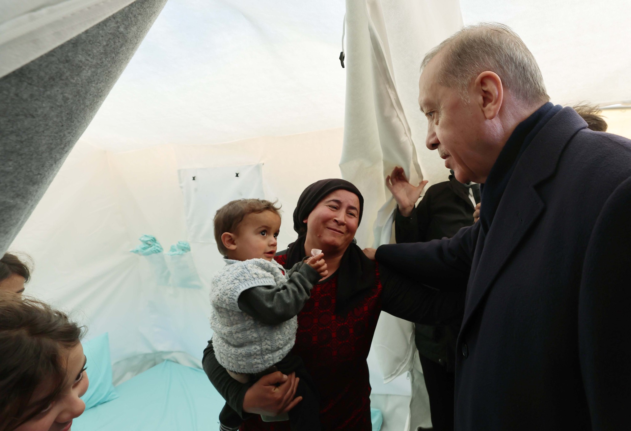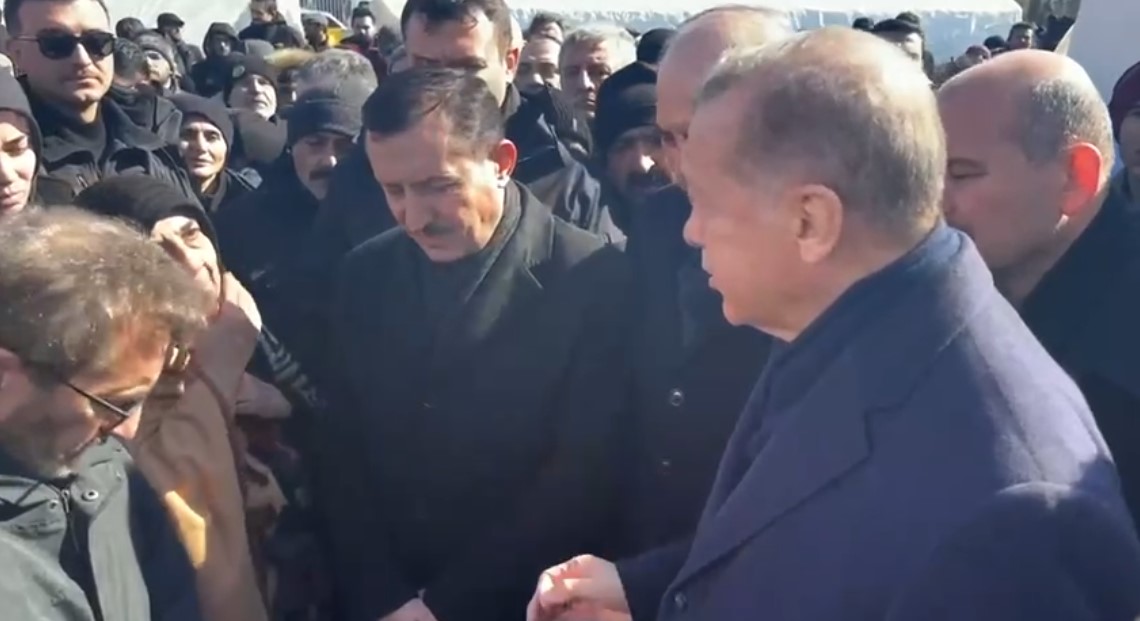 Başkan Recep Tayyip Erdoğan, Kahramanmaraş merkezli depremlerin ardından AFAD'ın Onikişubat Stadyumu'na kurduğu çadır kentte vatandaşlarla bir araya geldi. "Hoş geldiniz, kara günümüzde de geldiniz. Kara gün dostu." diyen depremzede kadın, "İki dünya kardeşimsin, seni hep kendime benzetirim. Ne senden musibet eksik oldu ne bizden... Çünkü Peygamberi sevdiğimiz için. Ne kadar da musibet gelse, sevmekten vazgeçmeyeceğiz. Ben, devletten yardım almıyorum, ayaklarımın üzerinde dikiliyorum. Gece, gündüz derdim ki Allah'ım beni devletime yük eyleme. Ama yük olduk. Devlet bizim babamızdır, atamızdır. Atamıza, babamıza sığındık." dedi.