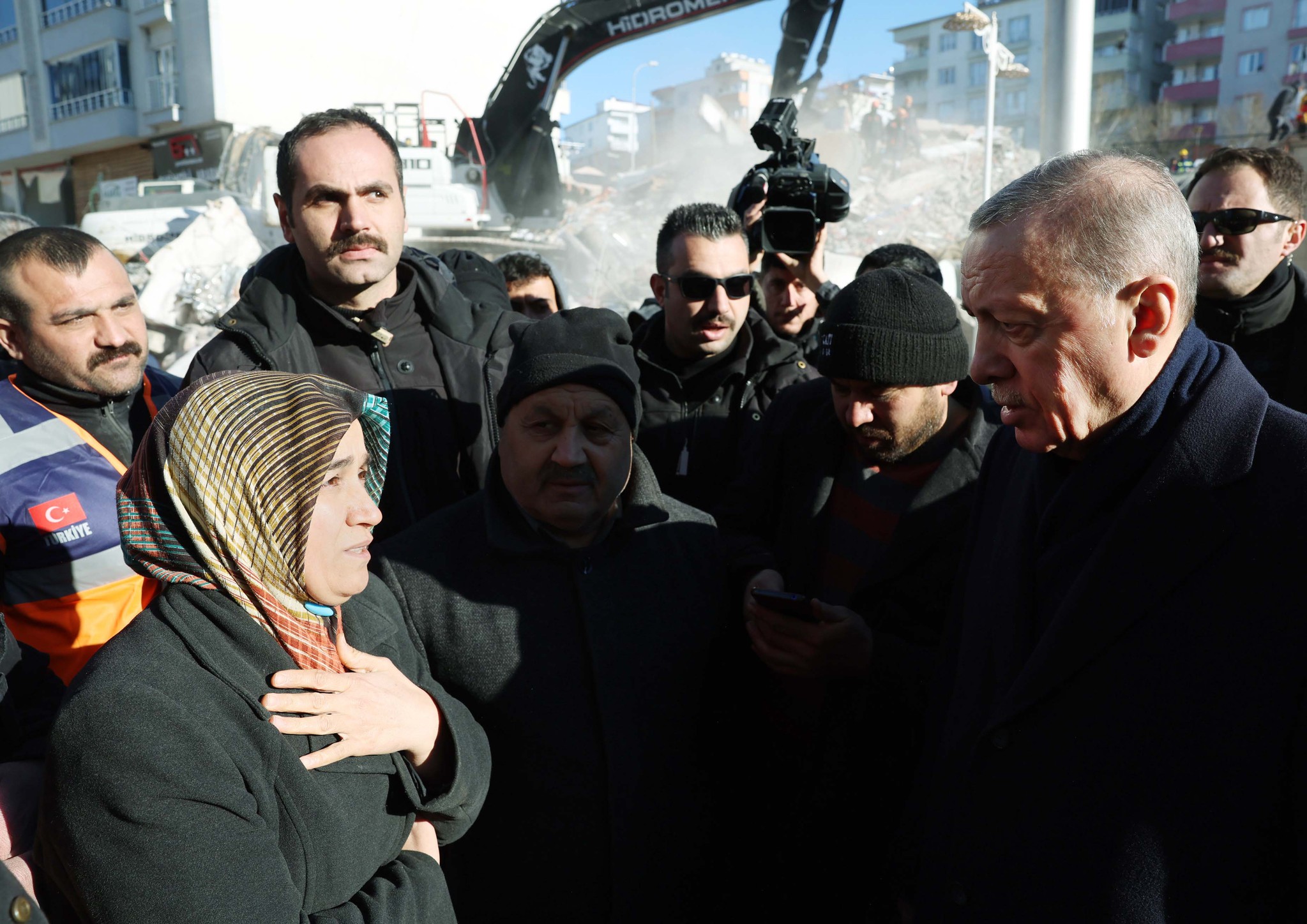 Depremzede kadın ise "Sizin yükünüz daha ağır. İki evladımla baş gelemiyorum ben. Siz, düşmanlarla, 7 düvelle savaşıyorsunuz. Allah muzaffer eylesin." karşılığını verdi.