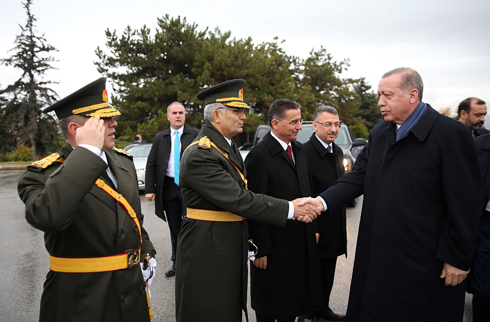 Erdoğan'a, TBMM Başkanı İsmail Kahraman, Başbakan Binali Yıldırım, Genelkurmay Başkanı Orgeneral Hulusi Akar, CHP Genel Başkanı Kemal Kılıçdaroğlu, yüksek yargı temsilcileri, Bakanlar Kurulu üyeleri, MHP Genel Başkanı Devlet Bahçeli, siyasi parti temsilcileri, kuvvet komutanları ile diğer devlet erkanı eşlik etti.