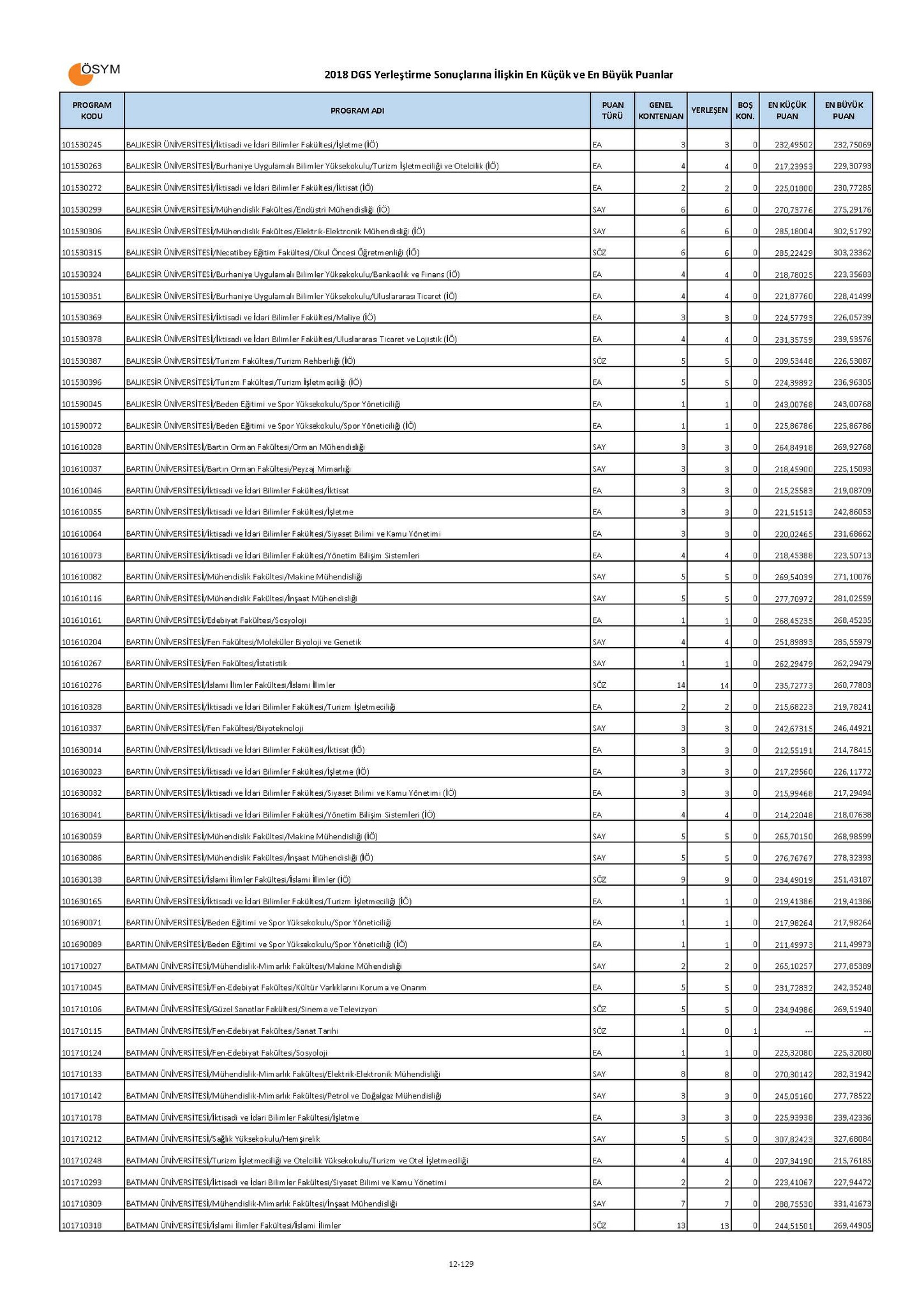 Bölümlere göre DGS taban puanları boş kontenjanları! | İşte, DGS ile geçişe yapılabilecek bölümler listesi!