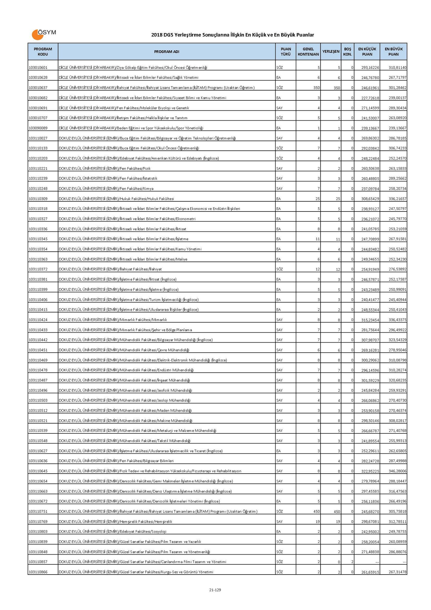 DGS taban puanları boş kontenjanları nelerdir? 4 yıllık üniversiteye geçmek isteyen öğrencilerin merakla beklediği DGS taban puanları boş kontenjanları açıklandı. Üniversiteye ve bölümlere göre puan ve kontenjan bilgileri ÖSYM tarafından açıklanan DGS tercih kılavuzu ile belli oldu. DGS tercih kılavuzunu sizler için derledik. Haberimizden DGS ile geçiş yapılacak bölümleri öğrenebilir, tüm üniversitelerin taban puanları ve boş kontenjanlarına ulaşabilirsiniz. İşte, DGS ile geçiş yapılacak bölümler listesi, puan ve kontenjan bilgileri!