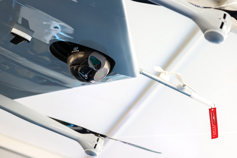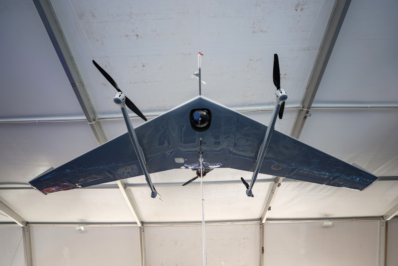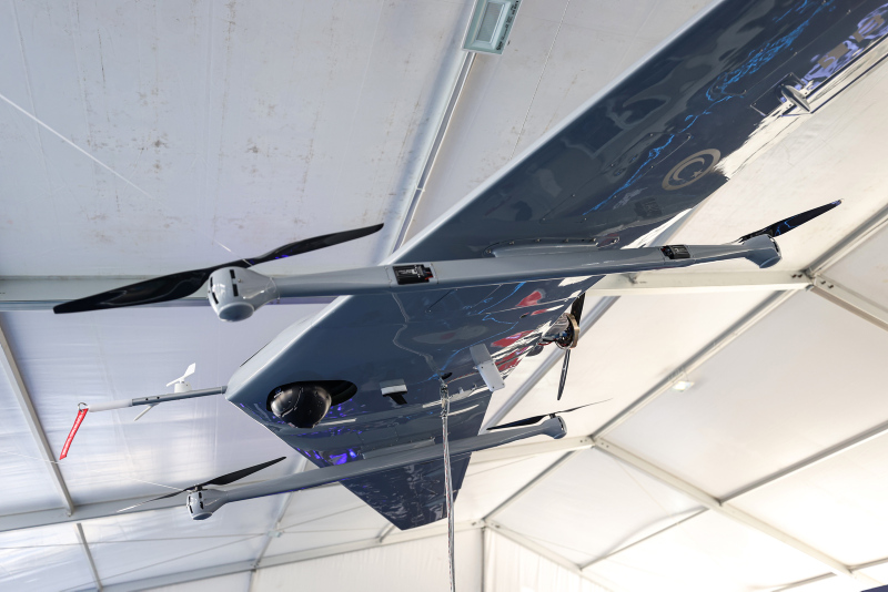 "Faydalı yük kapasitesi 5 kilogram. Üzerinde bulunan gündüz kamerası, termal kamera, lazer işaretleyici ve mesafe ölçer ile yerdeki birlikleri koordine edebiliyor. 50 kilogramlık kalkış ağırlığı var. Kanat açıklığı 5 metre ve 20'ye 20 metrelik bir alan içerisinden dikey iniş kalkışını gerçekleştirebiliyor.