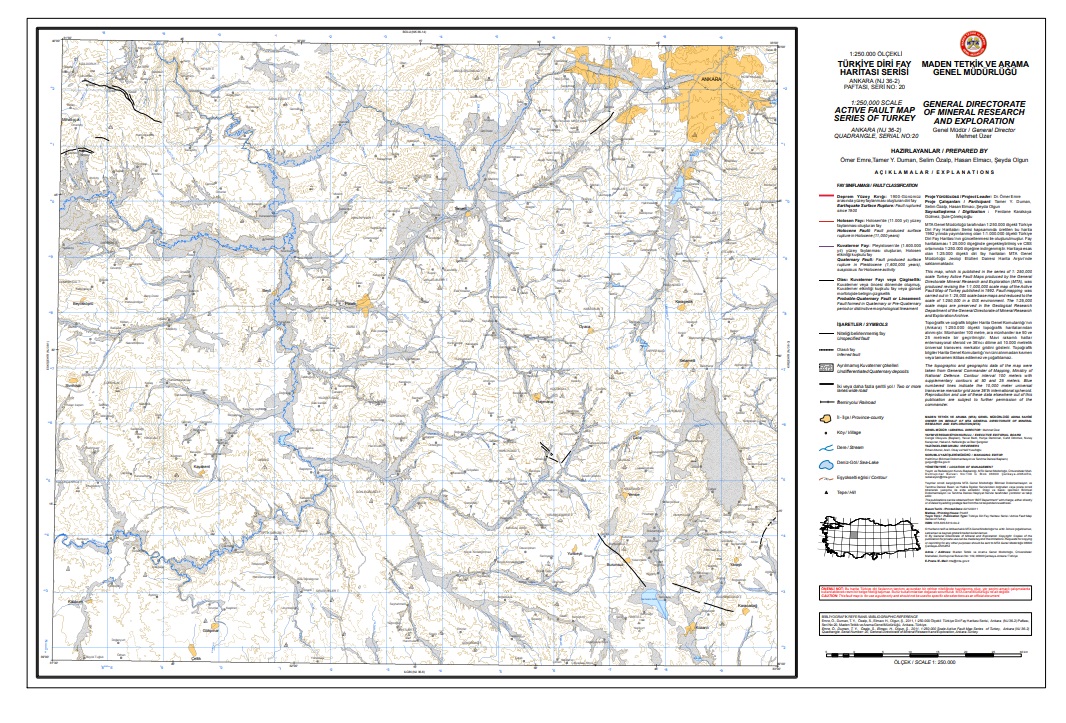 MTA tarafından 2004-2011 yılları arasında yürütülen "Türkiye Diri Fay Haritası'nın Güncellenmesi ve Diri Fay Veri Tabanı Oluşturulması Projesi" kapsamında, tüm Türkiye anakarasında hava fotoğrafı ve uydu görüntüleri destekli 1/25.000 ölçek hassasiyetinde detaylı arazi çalışmaları yapıldı. Bu çalışmanın ürünü olan haritalar ise 2010 ile 2013 yılları arasında 1/250.000 ve 1/1.250.000 ölçeğinde basılarak kullanıma sunuldu.