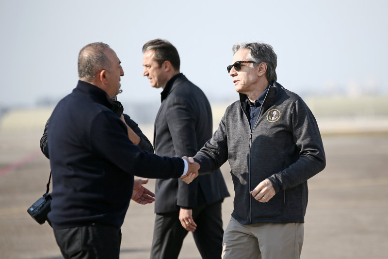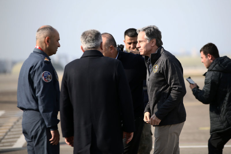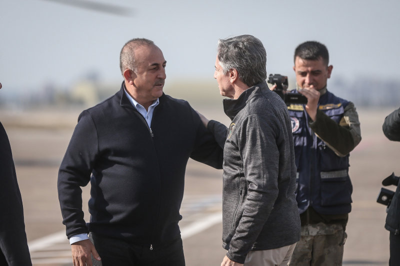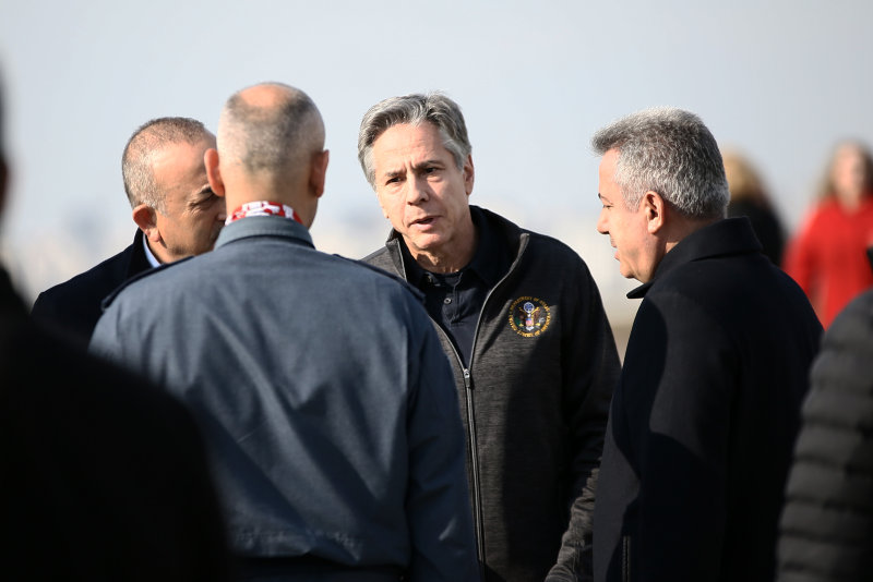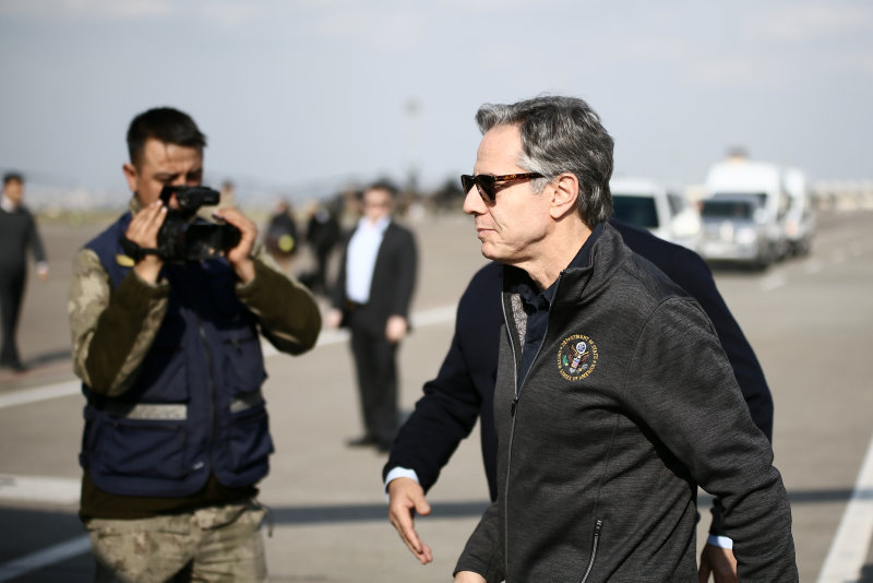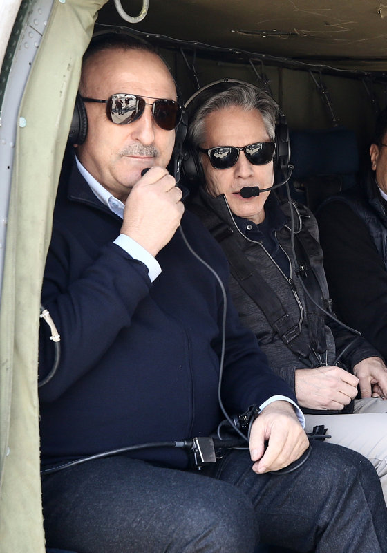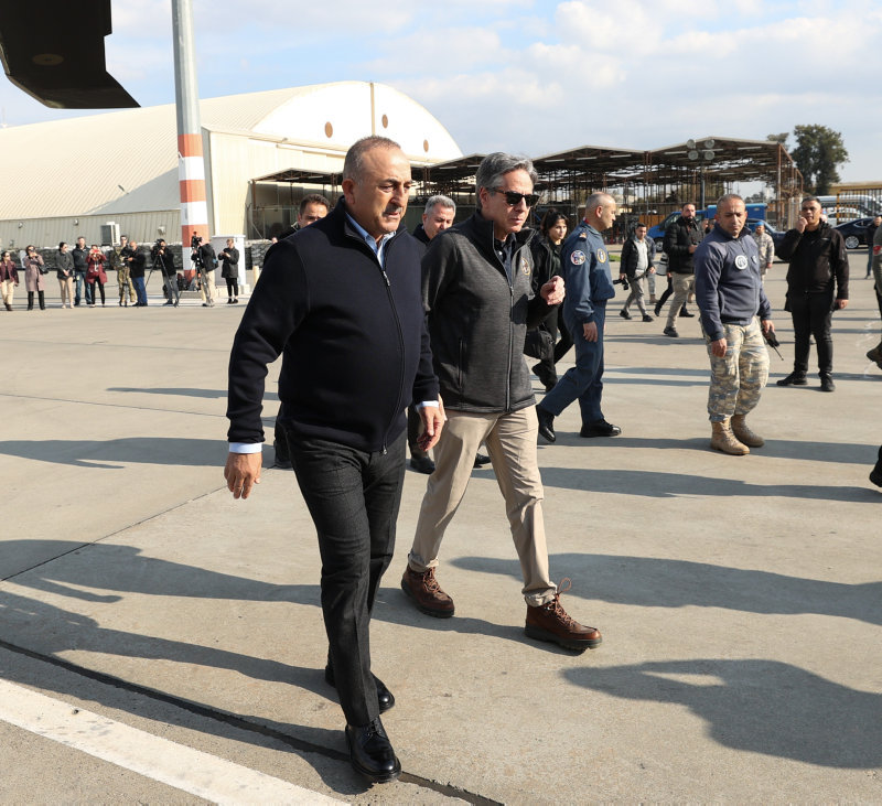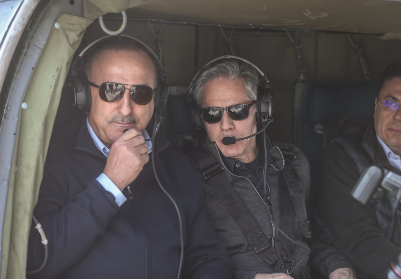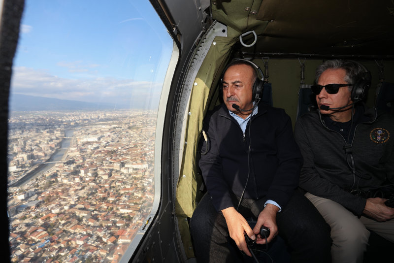 Çavuşoğlu ve Blinken daha sonra Kara Kuvvetleri Komutanlığına ait helikoptere binerek depremin etkili olduğu Hatay'a geldi.