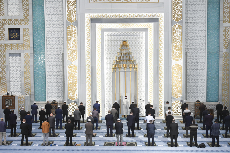 İlk olarak bir ay önce cuma, öğle ve ikindi namazlarında cemaatle namaza başlanıldığını ifade eden Erbaş, "Şimdi de sabah, akşam, yatsı namazlarımızı da kılmaya başlamış olduk. Rabbim kabul eylesin, bizleri camilerimizden ayırmasın" dedi.