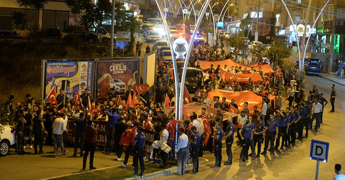 Burada şehitler için saygı duruşunda bulunan ve sık sık tekbir getiren vatandaşlar, "Kahrolsun PKK", "Şehitler ölmez vatan bölünmez", "Askere, polise uzanan eller kırılsın", "Türk Kürt kardeştir", "Ne mutlu Türküm diyene", "Her Türk asker doğar, "Şehidim hakkını helal et bize" ile "Vatan sana canım feda" şeklinde slogan attı.