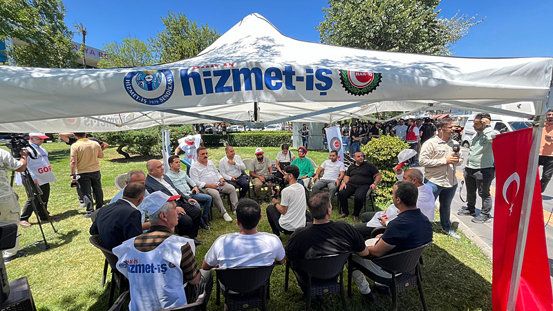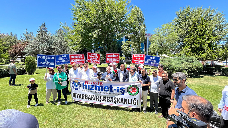 Hizmet-İş Genel Sekreter Yardımcısı Zekeriya Koca, Hizmet-İş Diyarbakır Şube Başkanı Ercan Kahraman, sendika üyeleri ve bazı belediyelerde işten çıkarılan işçiler, merkez Bağlar Belediyesi önünde çadır kurdu. İşçiler, "Baskılar bizi yıldıramaz", "Derdimiz ekmeğimiz" ve "İşçiyiz, haklıyız, kazanacağız" yazılı dövizler taşıdı.