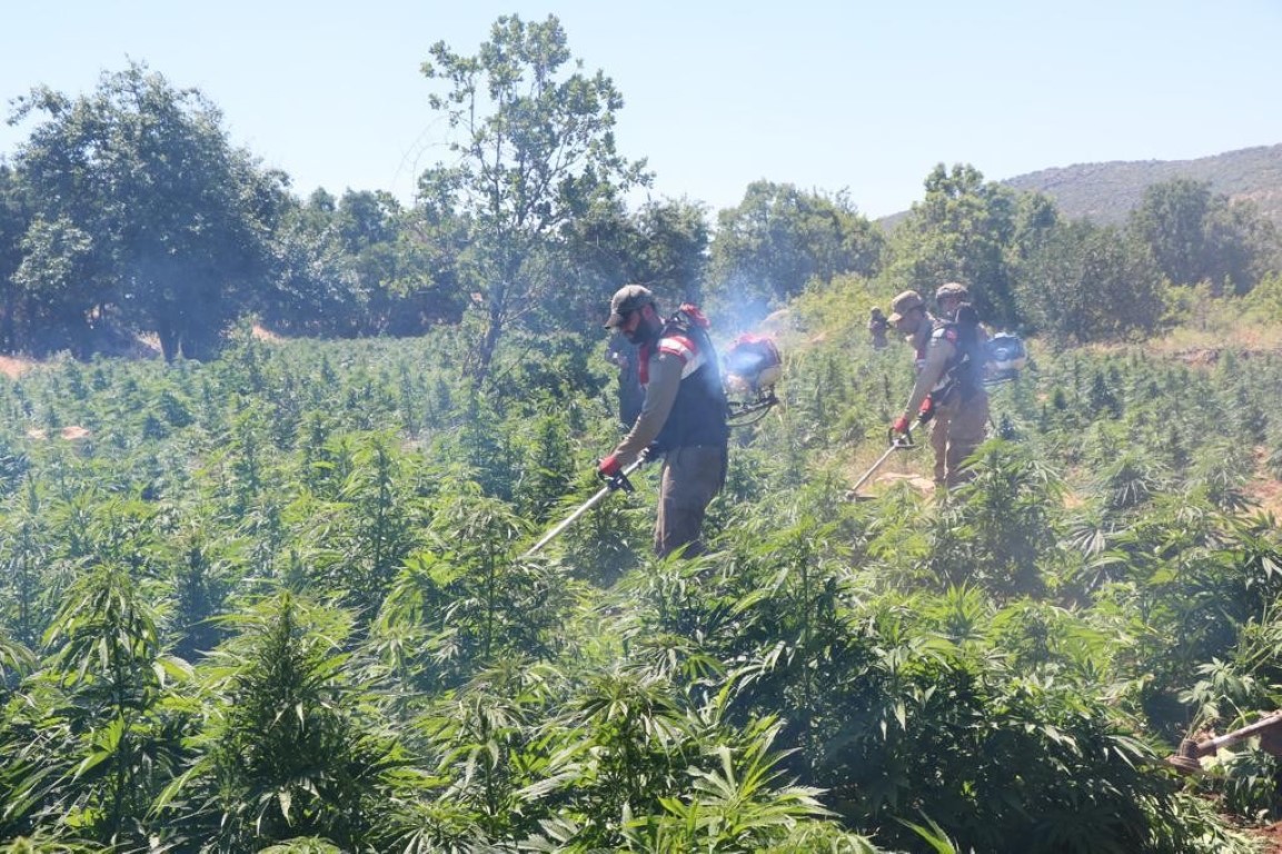 Diyarbakır'daki narko-terör operasyonunda 7 milyon 233 bin 602 kök kenevir 32 kilogram esrar ele geçirildi