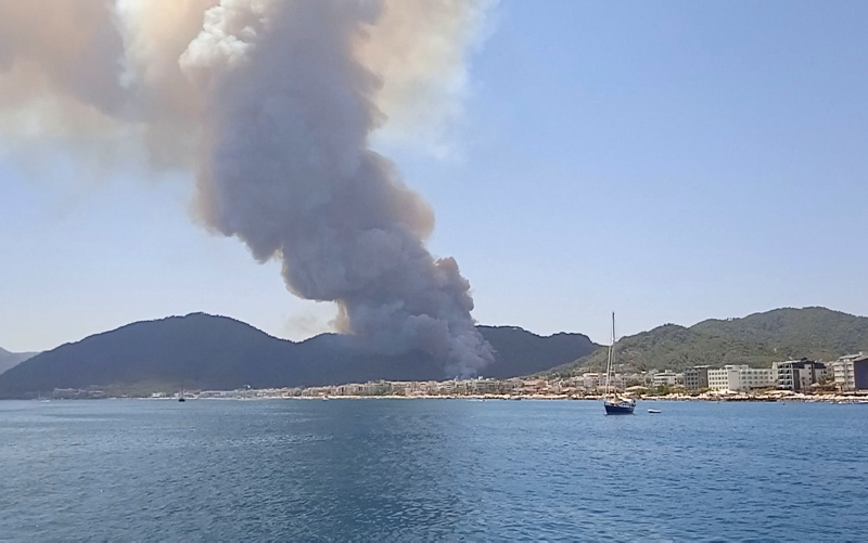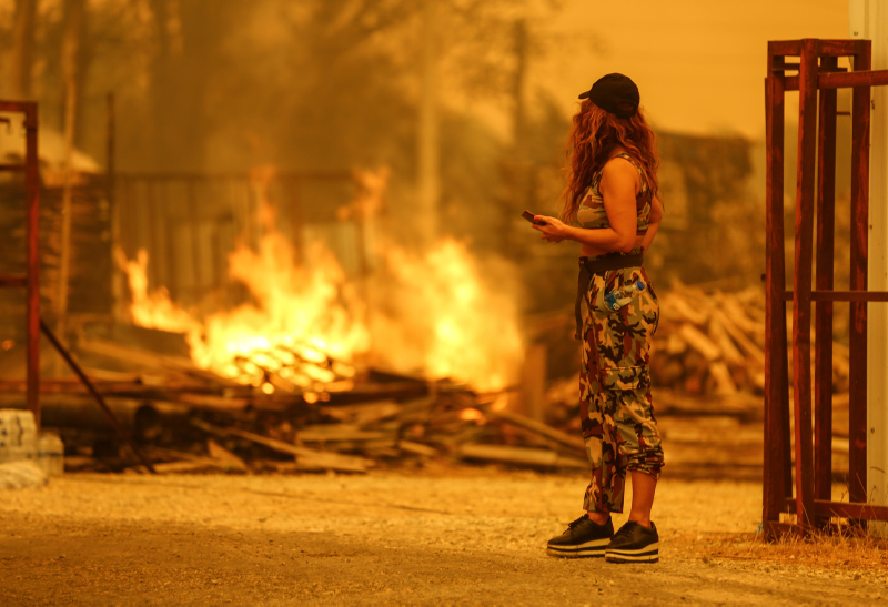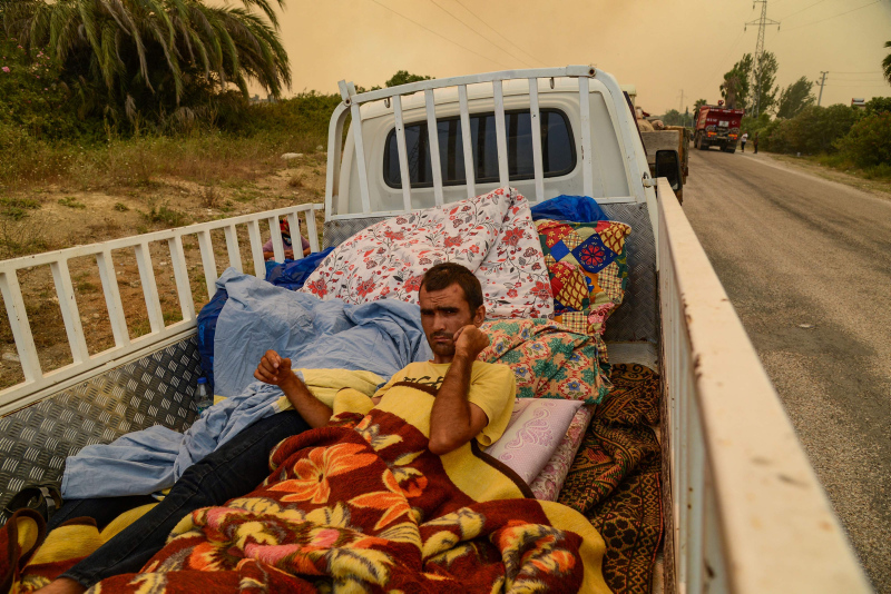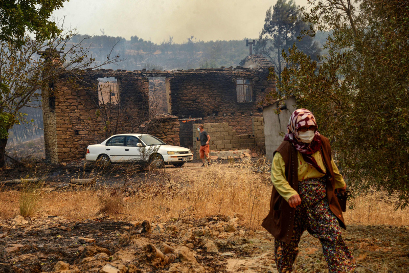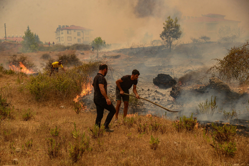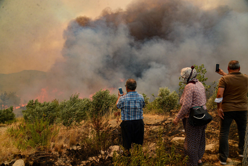 Uluslararası haber ajansları Türkiye'de meydana gelen orman yangınlarıyla ilgili onlarca fotoğraf servis etti. Dünya medyası olağandışı orman yangınlarının evleri sardığını yazarken, fotoğraflarda turistlerin yangına rağmen normal hayatlarına devam etmeleri dikkat çekti.