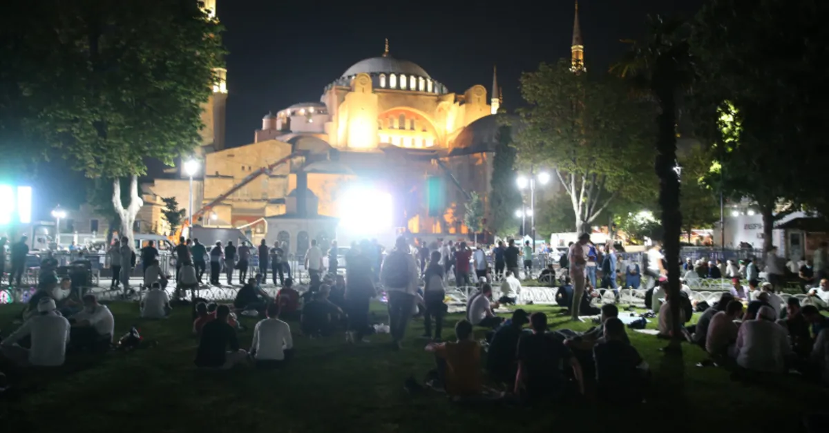 Farklı illerden Ayasofya Camisi'nde kılınacak ilk namaz için kente gelen bazı vatandaşlar, Ayasofya Meydanı'nda beklemeye başladı. Vatandaşlar caminin çevresindeki çimlerde akşam namazını toplu şekilde kıldı. Bazı vatandaşların ise Kur-an'ı Kerim okuduğu görüldü.