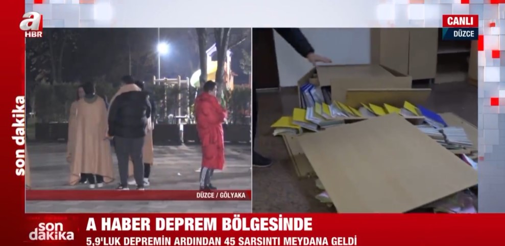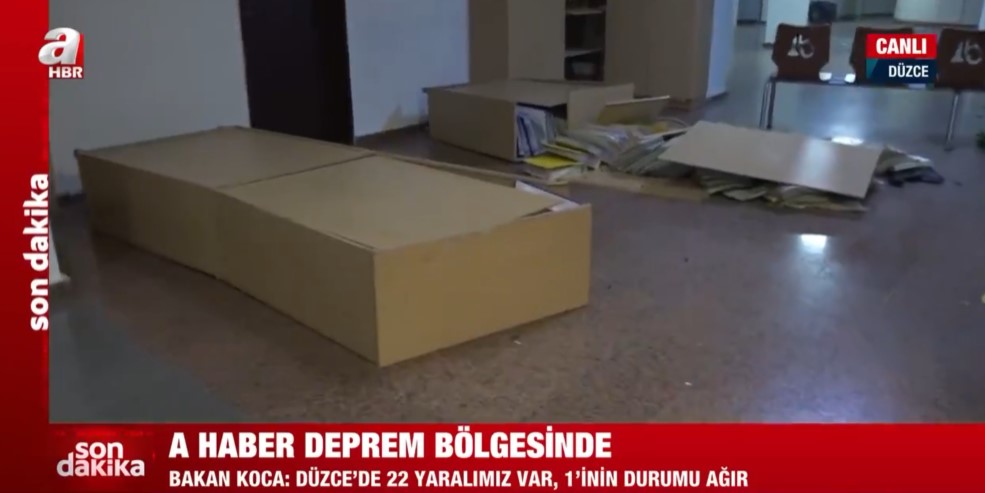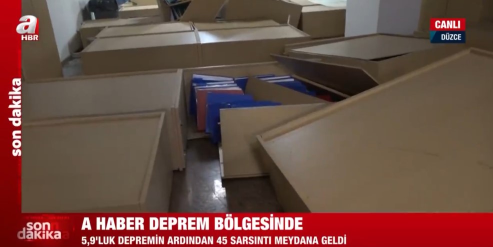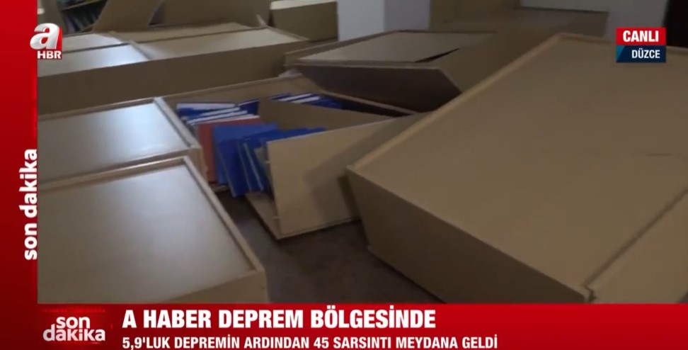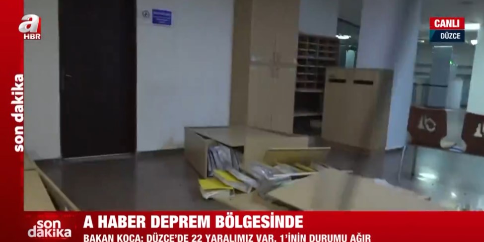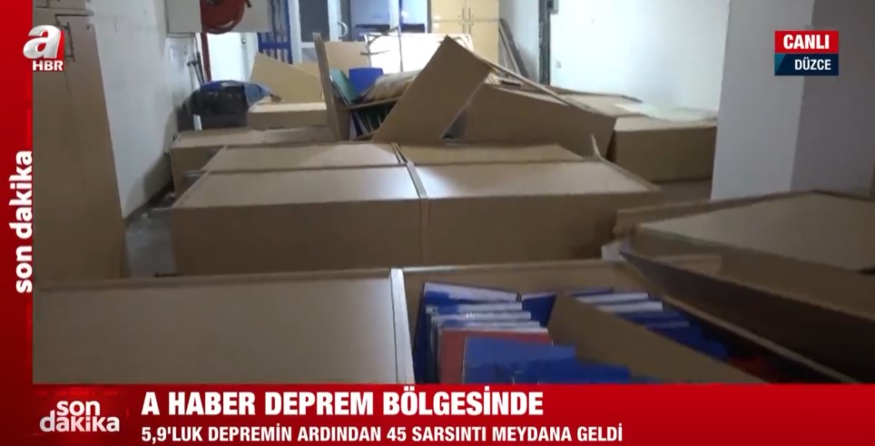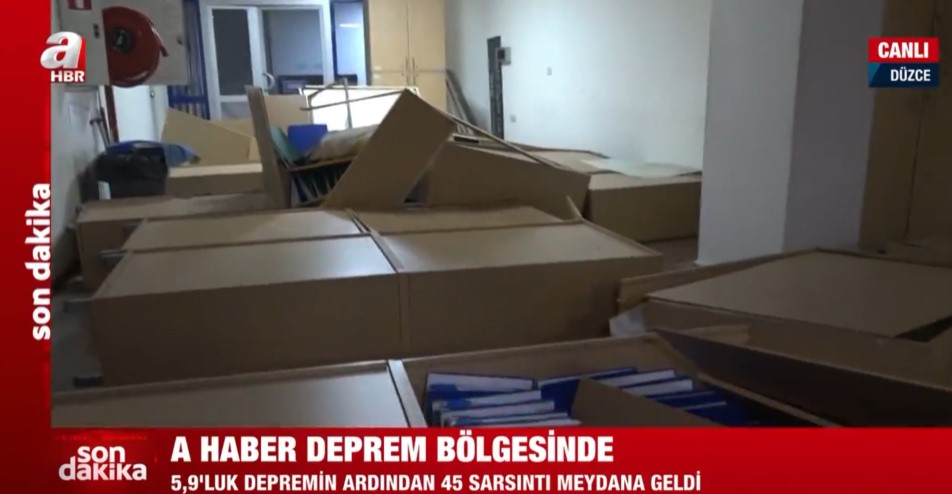 Düzce'de 5,9 büyüklüğünde deprem! A Haber depremin boyutunu gösterdi | Belediye binasında dolaplar devrildi