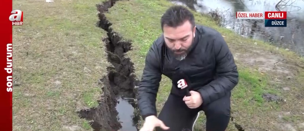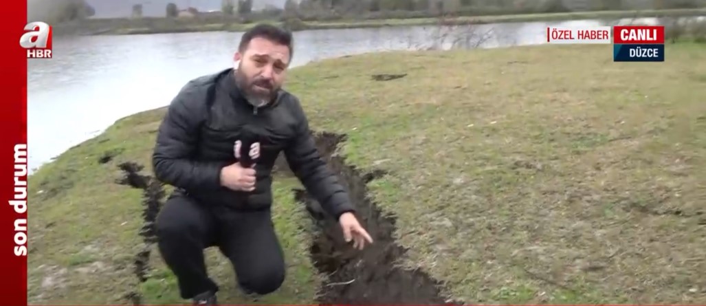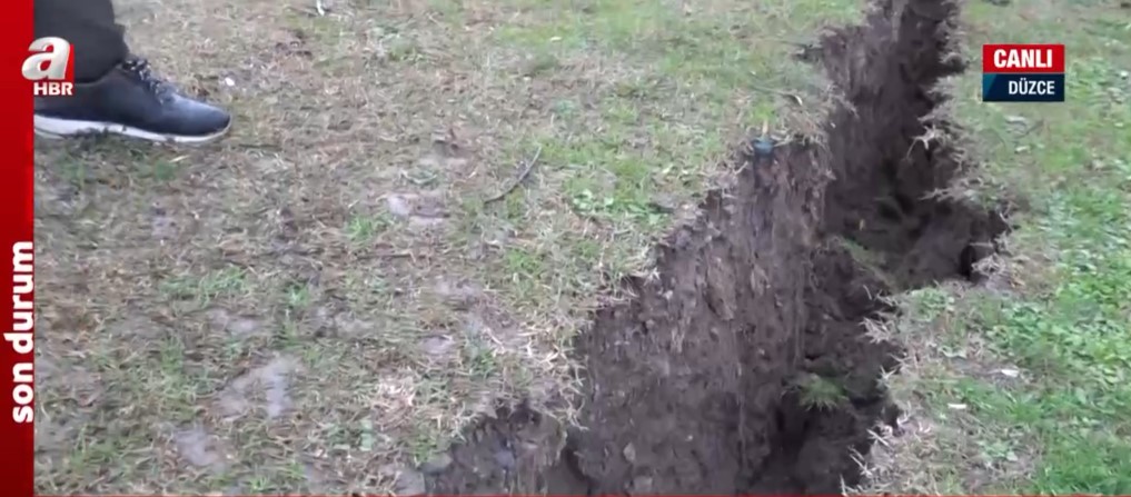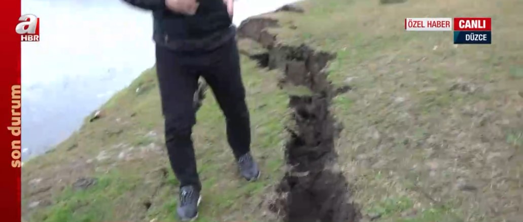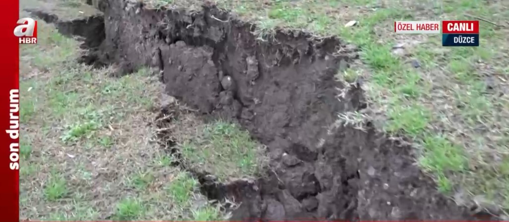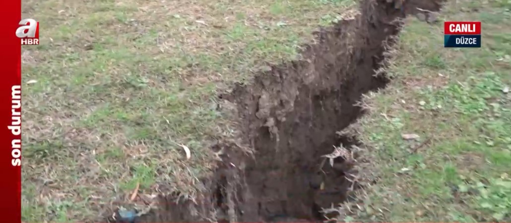 Dün Türkiye 04.08 saatlerinde gözlerini Düzce'de meydana gelen 5,9 şiddetindeki depremle gözlerini açtı. Bölgede yaralar sarılmaya çalışılırken A Haber deprem bölgesinden son durumu anbean aktarıyor. Muhabirimiz 5,9 şiddetindeki depremin izlerini ekrana taşıdı ve fay kırığını gösterdi. İşte tüm detaylar...