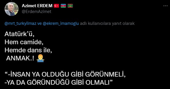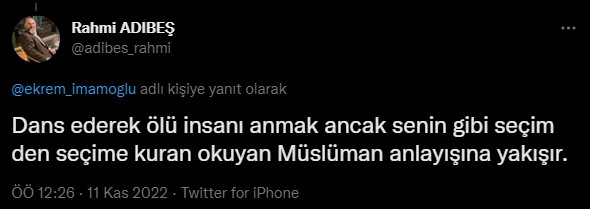CHP yönetimindeki İBB, vefatının yıl dönümünde Mustafa Kemal Atatürk'ü düzenlediği bir dizi etkinlikle andı. İBB Başkanı Ekrem İmamoğlu, türkü söylediği anma programında, bir de eşi Dilek İmamoğlu ile gülücükler saçarak dans etti. Atatürk'ü dans ederek anan İmamoğlu ailesi, sosyal medyada tepkilerle karşılaştı. Vatandaşlar, çifte tepkisini, "Matem günü dans edilir mi? Ayıp", "Yani ilk defa gördük. Ölüm yıl dönümünde dans ederek kutlamak", "Dans ederek, ne kutladın be. Hem de bir ölüm yıl dönümünü." minvalindeki yüzlerce tepki ile dile getirdi.