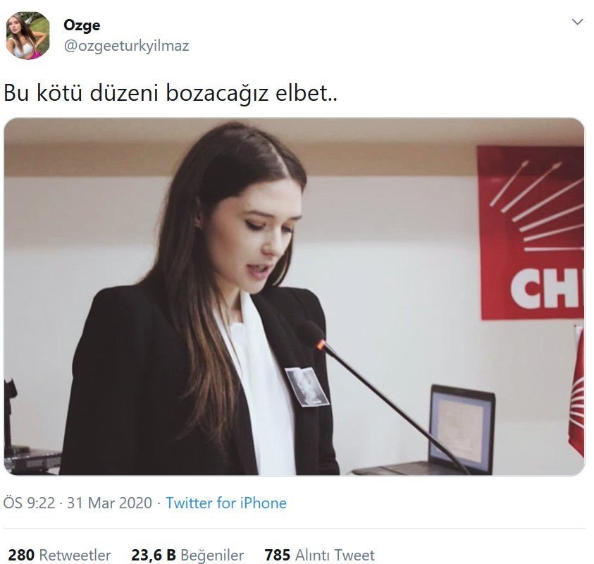 Büyükçekmece'de yüzlerce CHP'li genç isyanda ilçe yönetimini eleştiriyorlar. Miss Turkey güzellik yarışmasına katılan Özge Türkyılmaz CHP'li İBB'de kariyer danışmanı oldu!" ifadelerini kullandı.