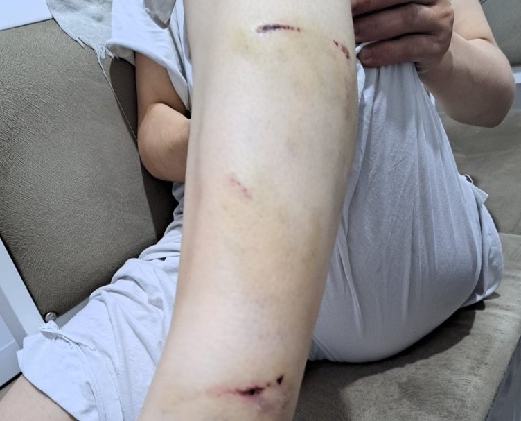 Üstümü değiştirmek için geçecektim ki kapı açıldığında daha adım bile atmadan Murat Beyin köpeğinin yanında 2 tane daha köpek vardı. Onlar havladı ama saldırmadı. Thor çok saldırgan olduğu için ve benim haricimde 2 farklı kişiyi daha ısırdığı için onu Sabah 06.30 gibi kulübesine koyuyorlar akşam da 17.30 gibi salıyorlardı. O gün güvenlikler Thor'u kulübesine koymayı unutmuşlar. Diğer köpekler havlayınca Murat Bey'in köpeği de havlayıp bir anda saldırdı. Beni yere düşürdü. Sol ayak bileğinden ısırdı. Defalarca ısırarak yaraladı. Ardından baldırımdan yakaladı. Aynı zamanda tırnaklarıyla da çiziyordu. Baldırımdaki damardan ısırdığı için daha da şiddetli ısırmaya devam etti. 5 derin diş izi var baldırımda.