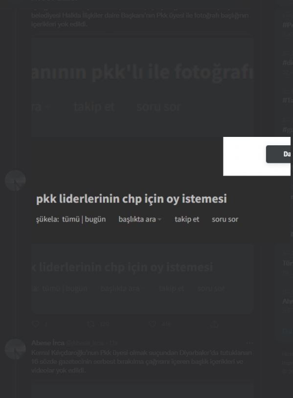 TERÖR ELEBAŞININ CHP İÇİN OY İSTEDİĞİ BAŞLIĞIN İÇERİKLERİ VE LİNKLERİ YOK EDİLDİ