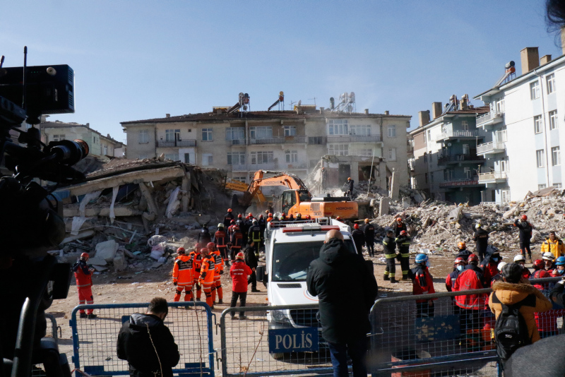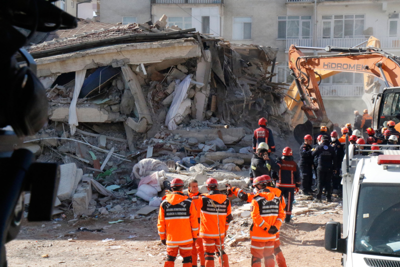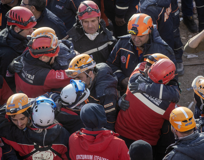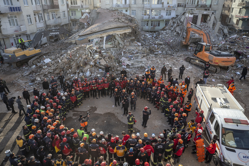Elazığ Sürsürü Mahallesi'nde yıkılan Dilek Apartmanı çalışan arama kurtarma ekipleri, son kişinin de çıkartılmasının ardından enkaz başında toplanarak küçük bir tören düzenledi.