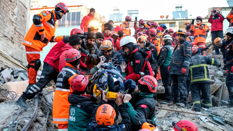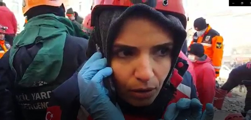 Arama kurtarma ekiplerinden enkazda duygusal tören düzenlendi. Farklı ekipler törenin ardından hayatını kaybedenler için dua etti.