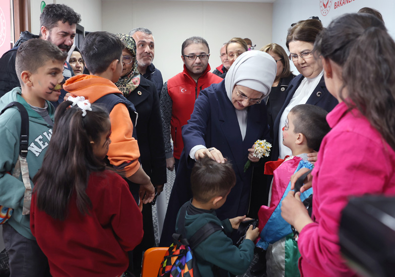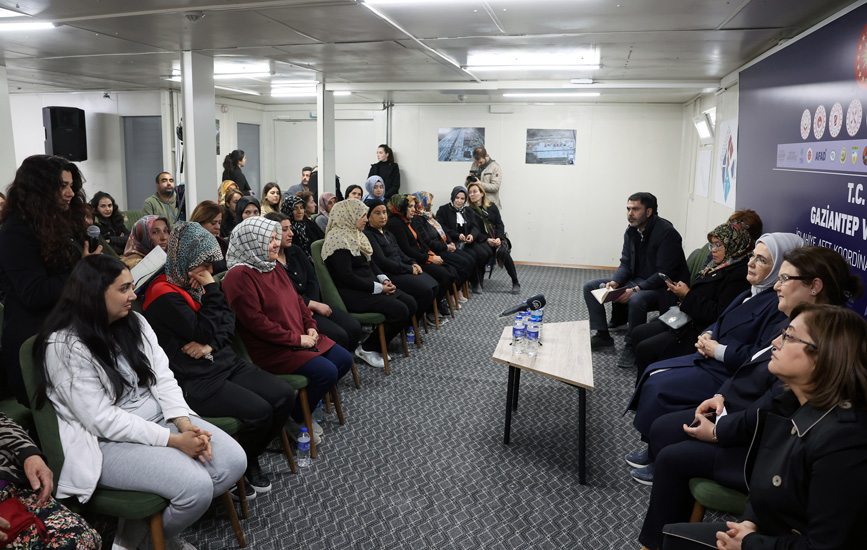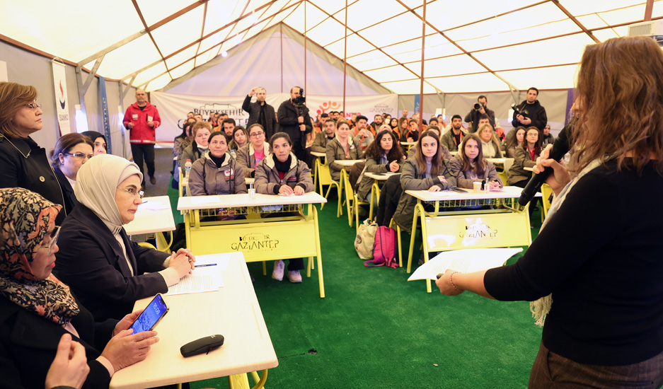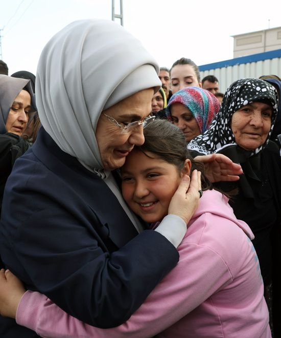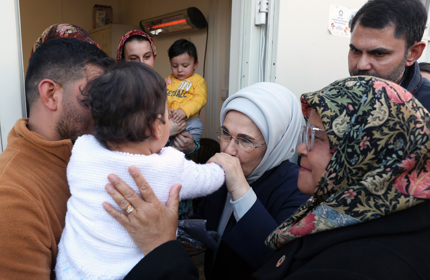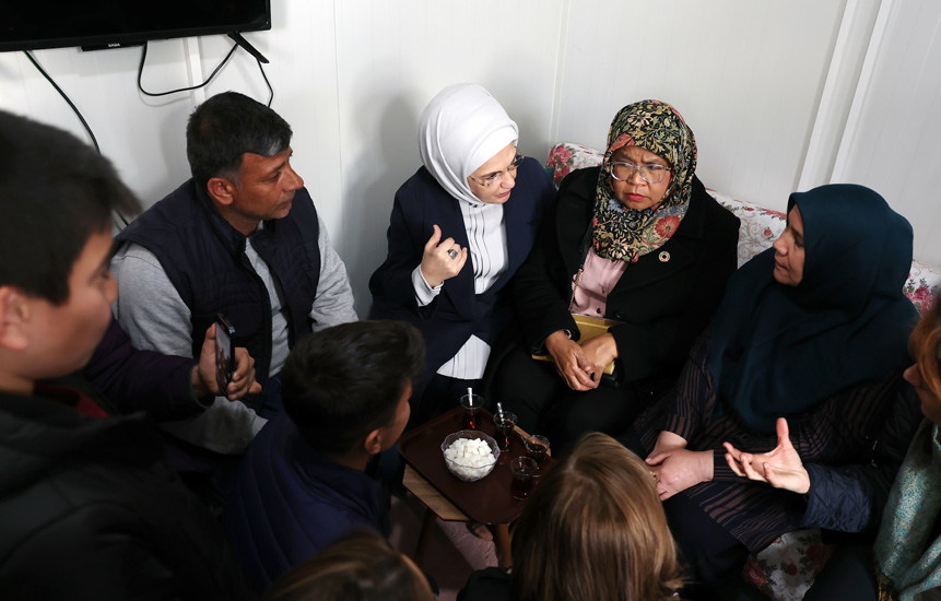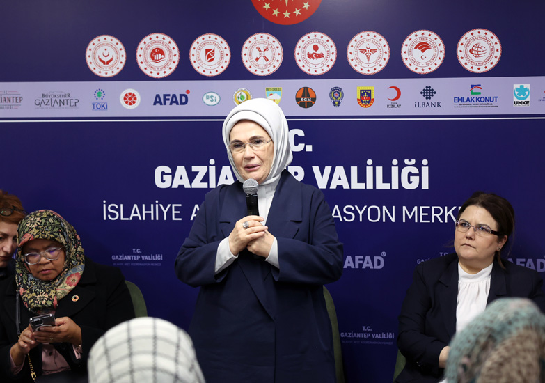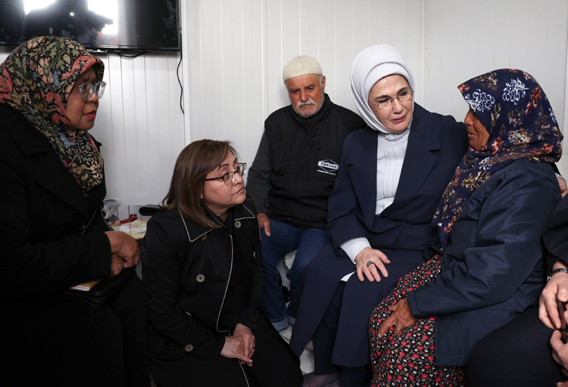 Başkan Recep Tayyip Erdoğan'ın eşi Emine Erdoğan, Birleşmiş Milletler (BM) Habitat İcra Direktörü Maimunah Mohd Sharif ile Kahramanmaraş merkezli depremlerden etkilenen Gaziantep'in Nurdağı ve İslahiye ilçelerini ziyaret ettiler ve konteyner kentte kalan depremzedelerle bir araya geldiler.